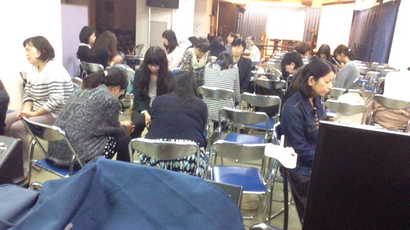 愛ちゃんが、出欠表記入中! 後ろ姿で誰だかわかる!(◎_◎;) 『ゴスペルのご馳走、いただきま~す』小代