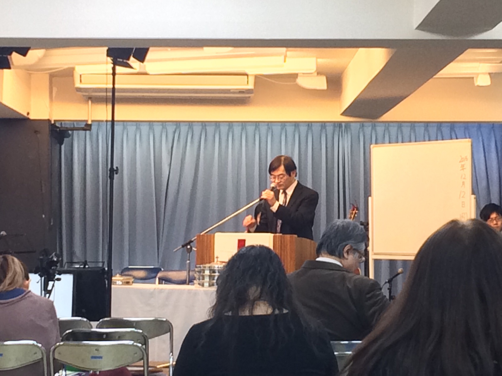 なぜか角笛で笑いを取ろうと頑張るダビデさん。それを見守る窪田さん。 第ニ礼拝、スタートです。 ミカエル
