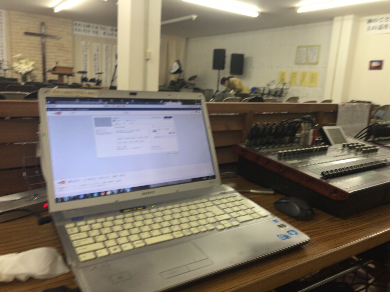 長崎カリスマ聖会で使うパソコンで作業😃さきほど熱唱しすぎたので寡黙に作業中(笑)😐✌️✨ 神のしもべ長崎教会 望🐾