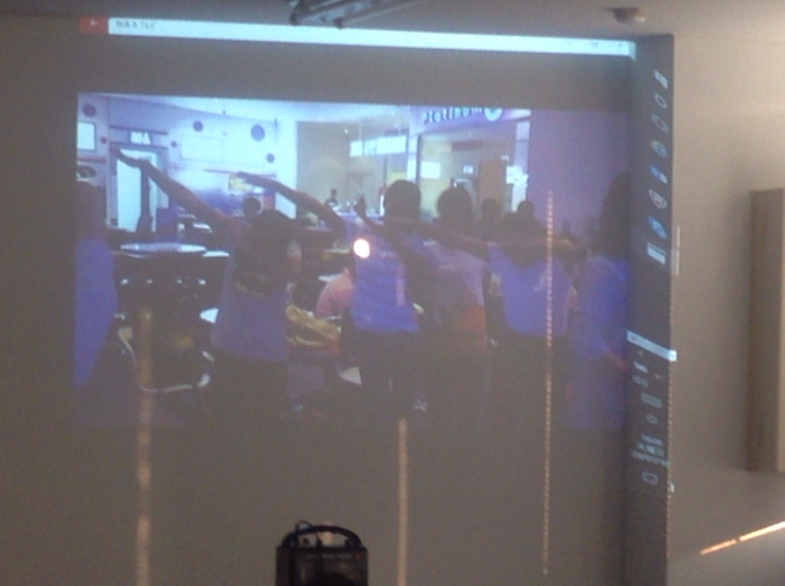 次はカンボジアチームの子供たちの映像をみんなで観ています。 奈良 たけなか