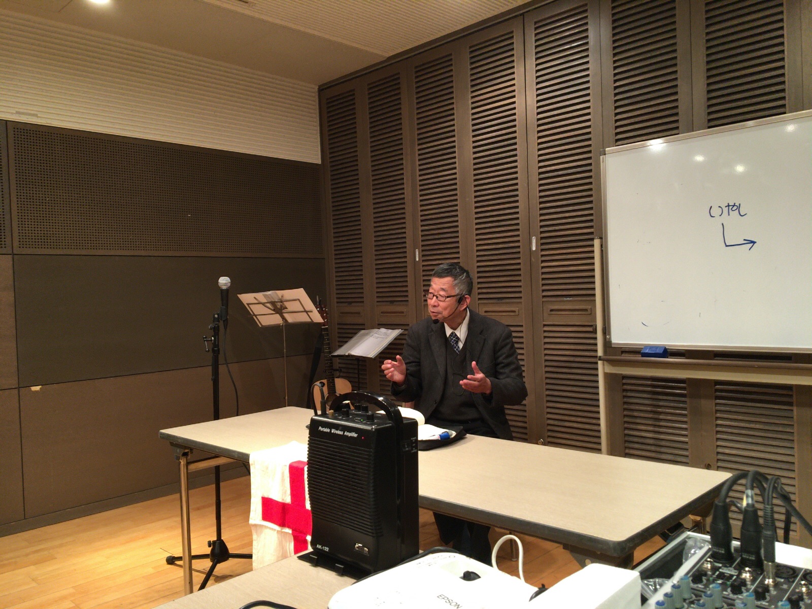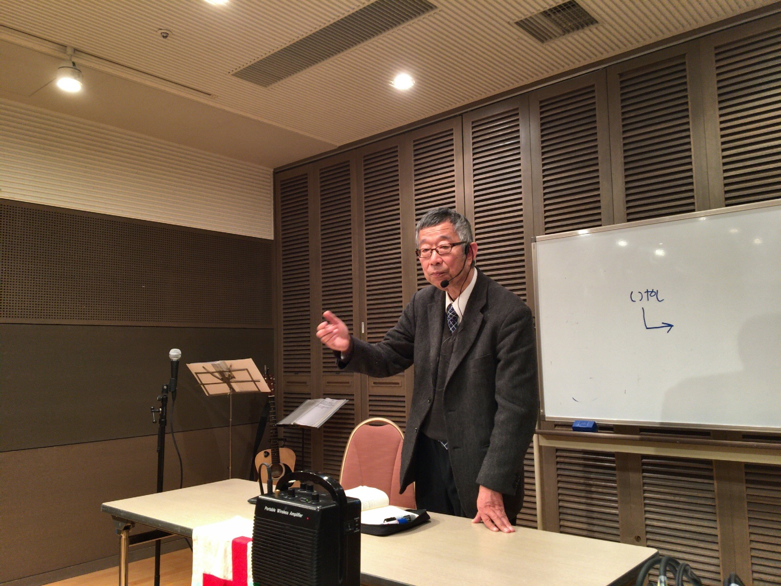 いやしに関する1分動画を観て、パウロ秋元さんのお話を聴いています。 京都シオン:エリヤ