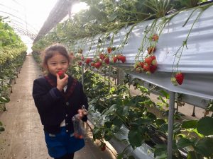 幼稚園帰りにいちごをもらいにパパの温室へ\( ¨̮ )/ 今年はいちごが少なくなかなか食べれていないので大喜びのみーちゃんですꉂꉂ(๑˃▿︎˂๑)♡
