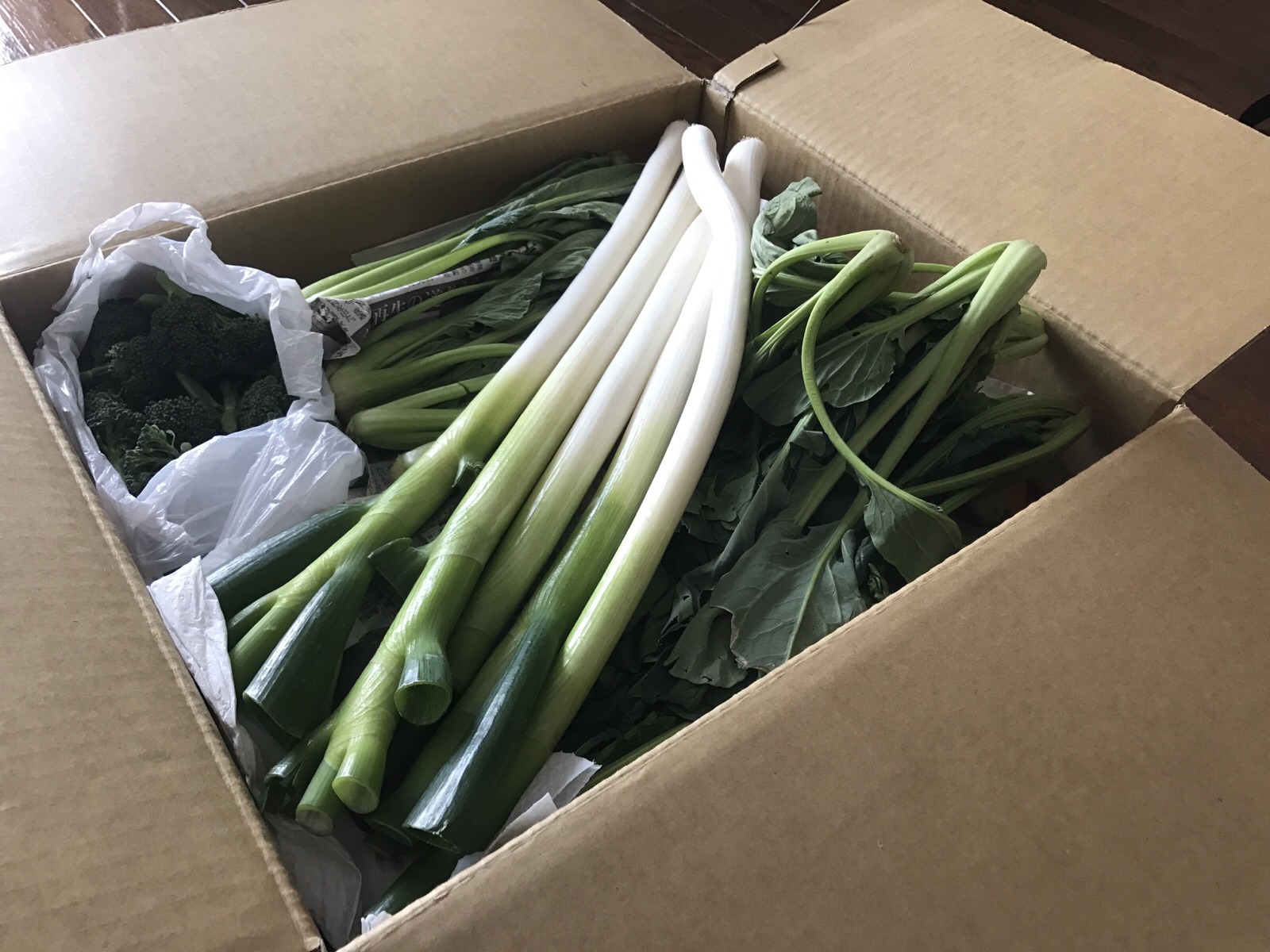 奥さんのお爺ちゃんから宝箱が届きました!感謝します(^O^)/ ねぎ、ブロッコリー、ほうれん草、サツマイモ、でこぽん˚✧₊⁎❝᷀ົཽ≀ˍ̮ ❝᷀ົཽ⁎⁺˳✧༚ 久留米 matsu