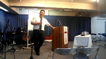 夜の土曜日礼拝がスタートします! 愛ちゃんが角笛を吹いてます!
