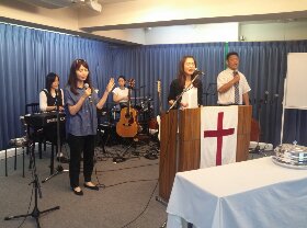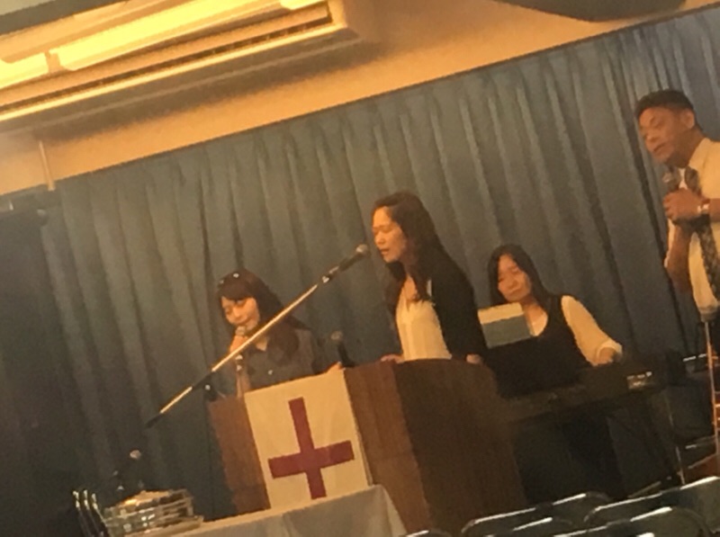 土曜礼拝が始まりました!ラベイユのまりちゃんが賛美を導きます。