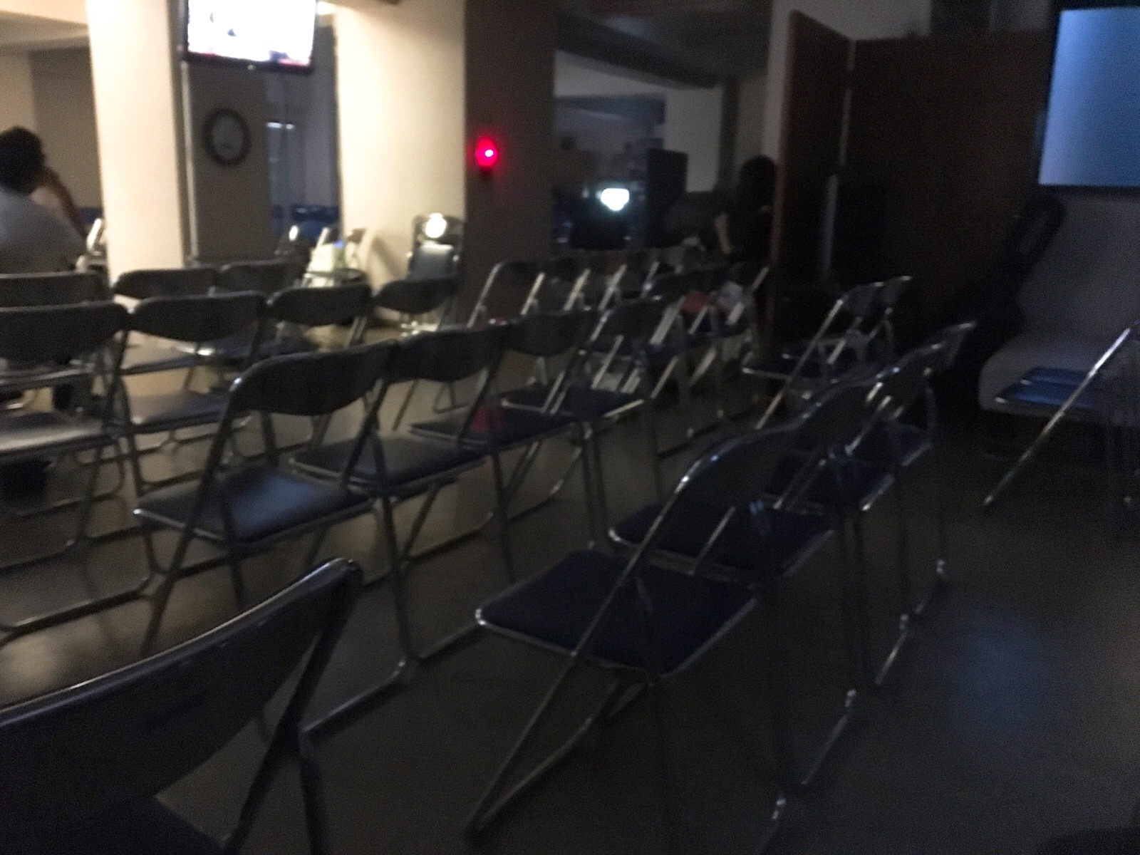 パトモスチームの映像を見ています。電気を消したら、本当に真っ暗でした…