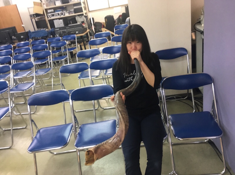 土曜礼拝、スタートします! 愛ちゃんが角笛を吹きます!