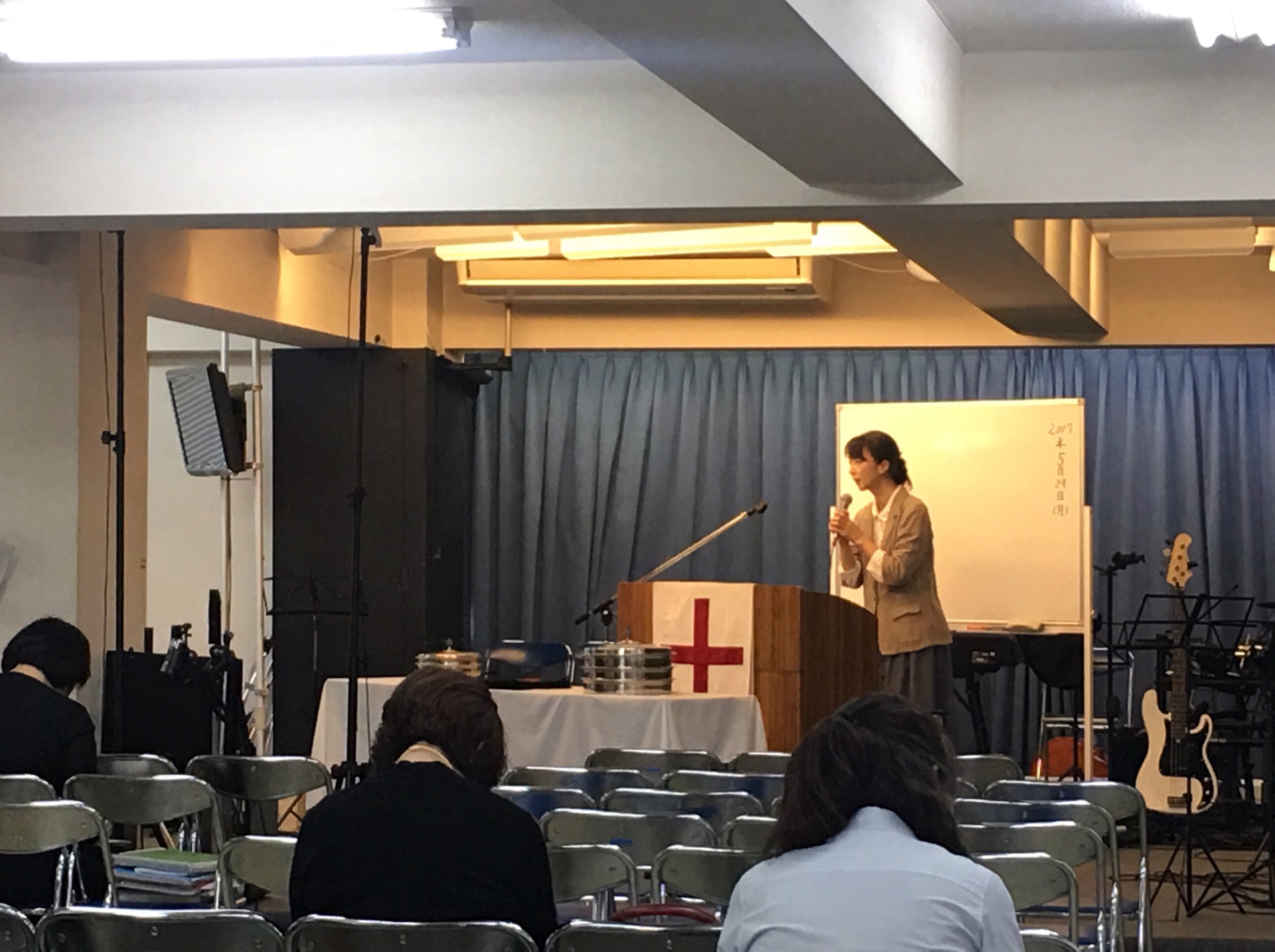 小代さんは聖餐式のお片づけ中です。 ふじた