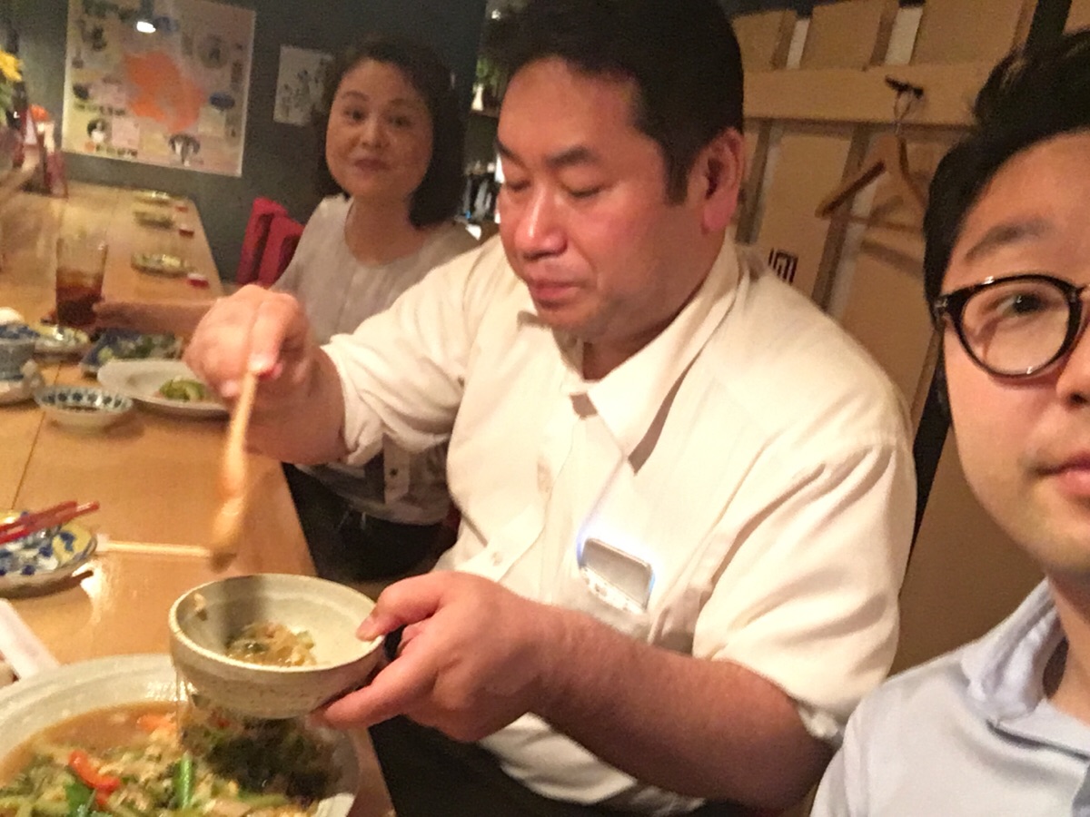 まさにヨハネが焼きおにぎり茶漬けを食べるところ!