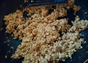 鳥むね肉が良いと聞きたので、みそ味のそぼろを作りました。 しめじでかさ増ししてます。 クリタ