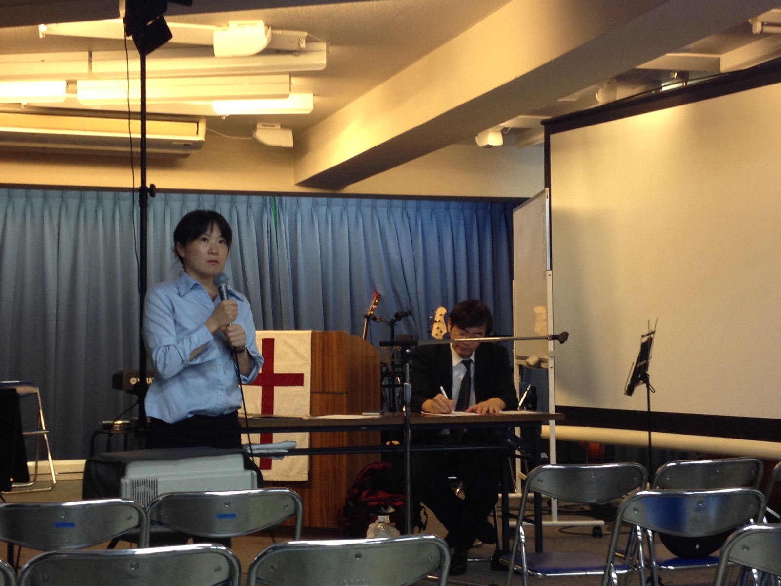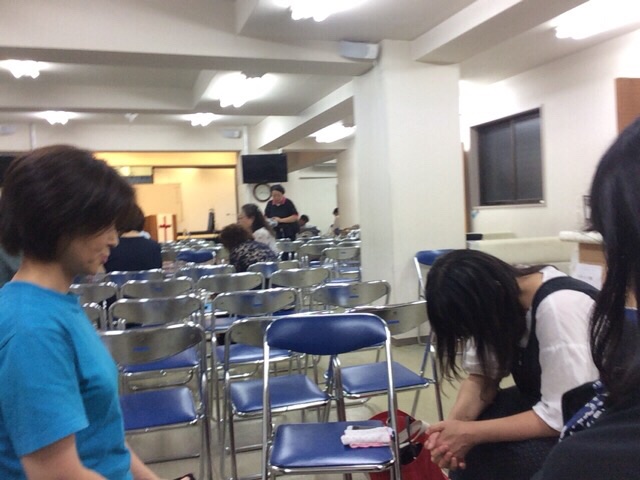 木曜日のファミリーデイキャンプへのお祈りの要請など、連絡している愛ちゃん。40人の参加が決まっているそうです。
