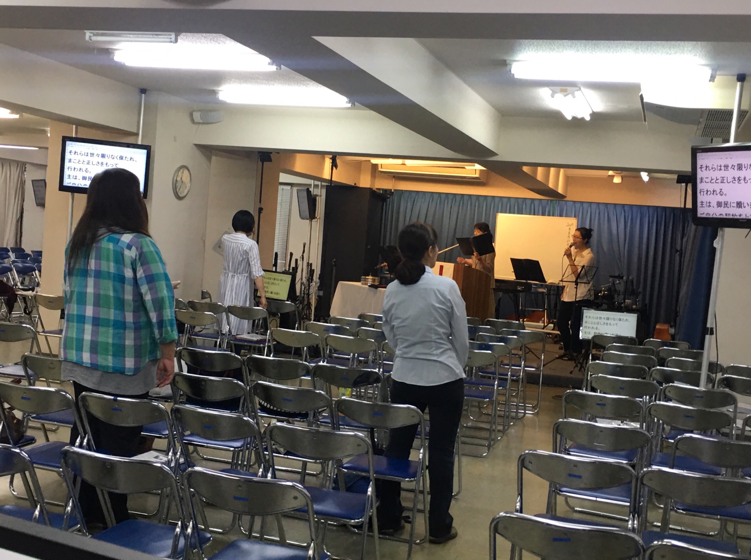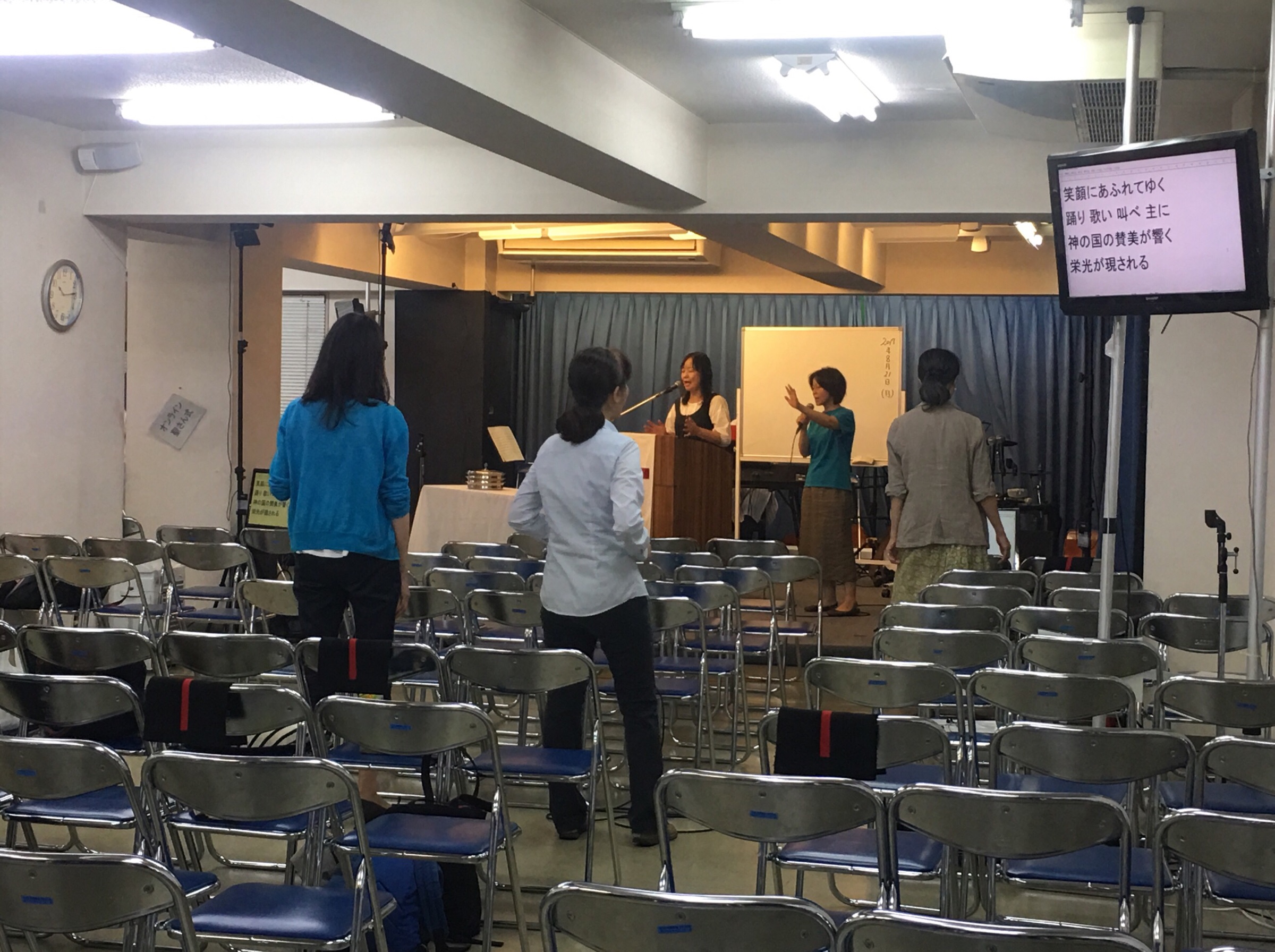 月曜第一礼拝が始まりました! 清水さん、賛美を導いてます。
