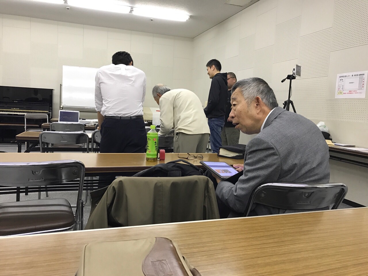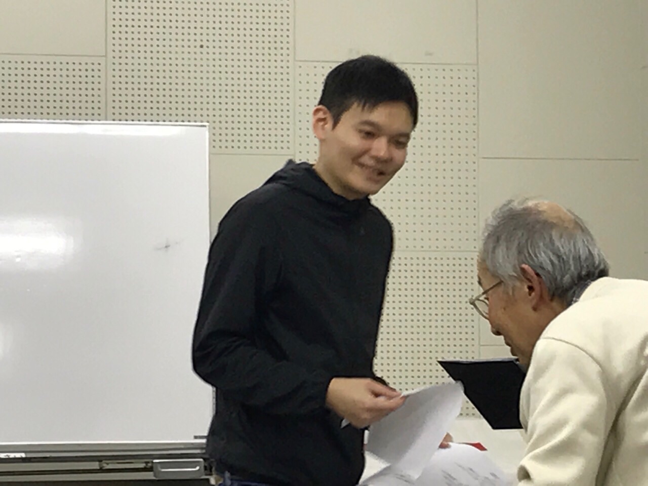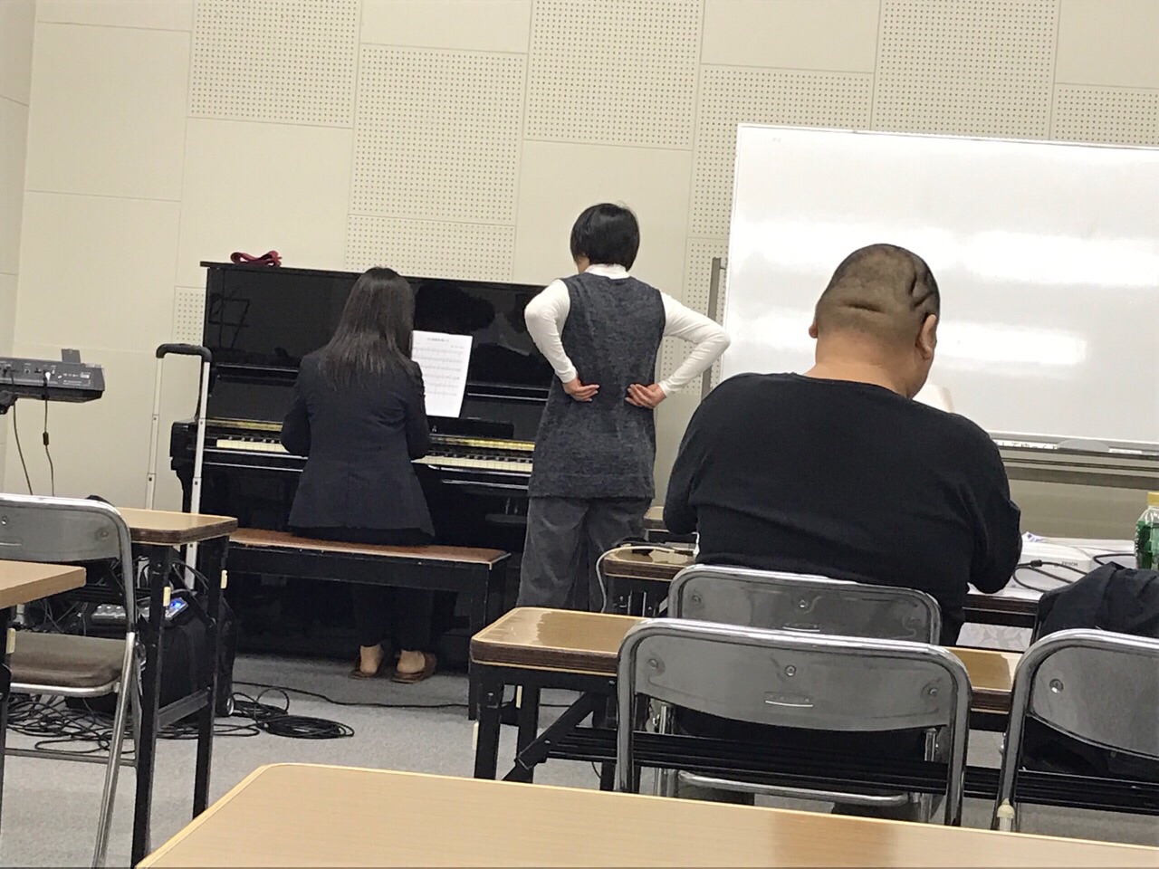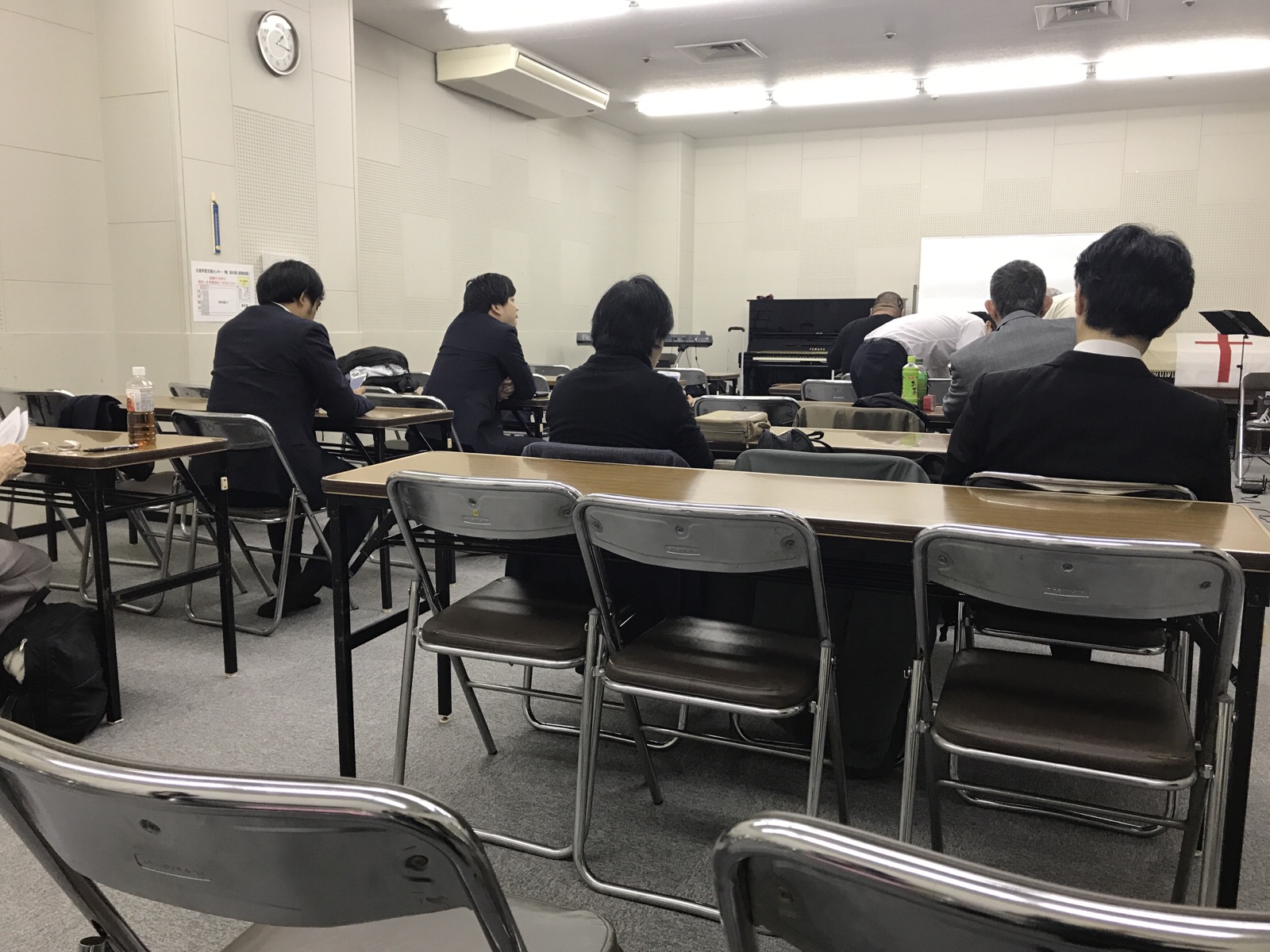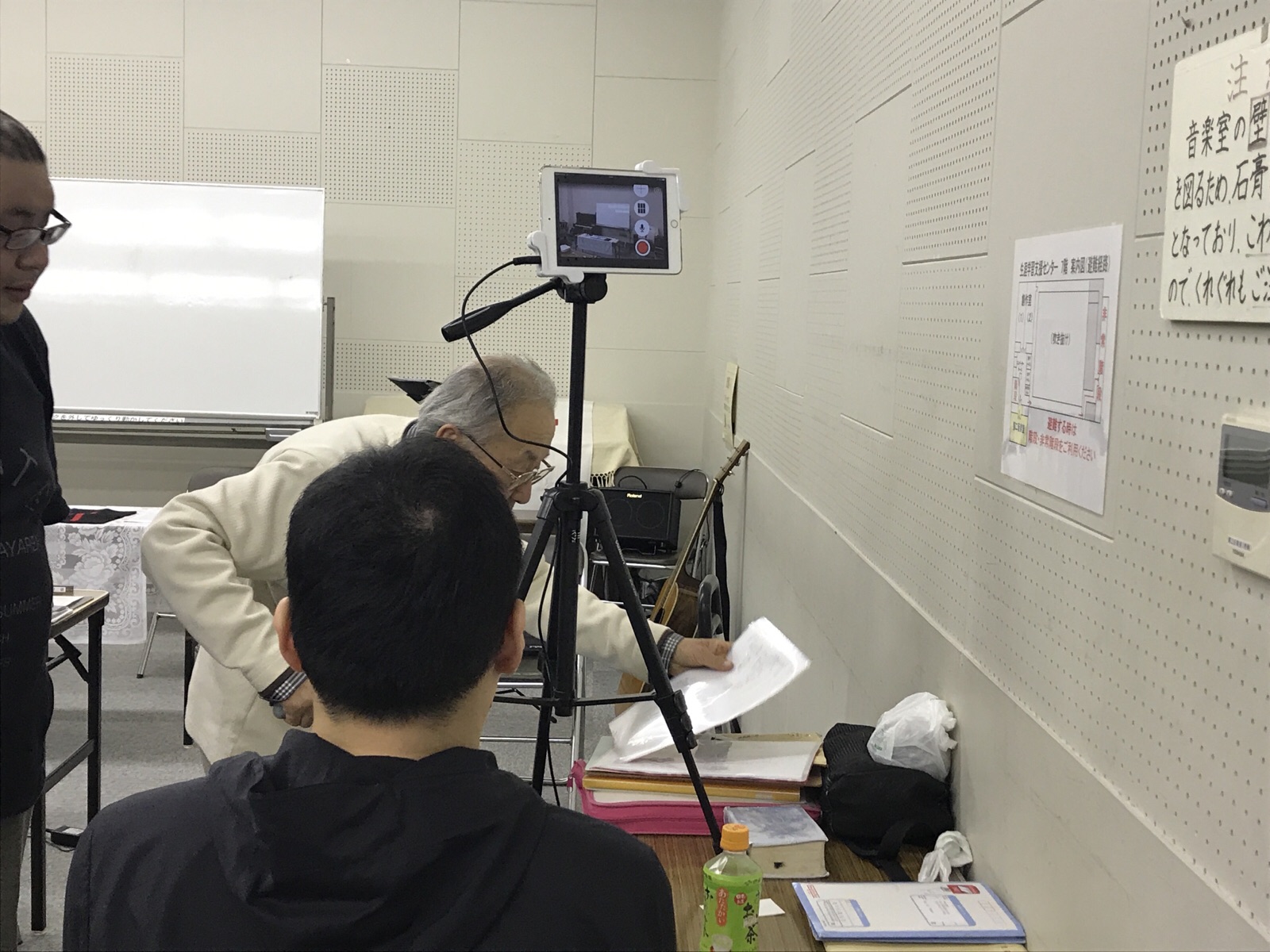特別賛美の練習をしています。 石田君が扇子を仰いでいます。