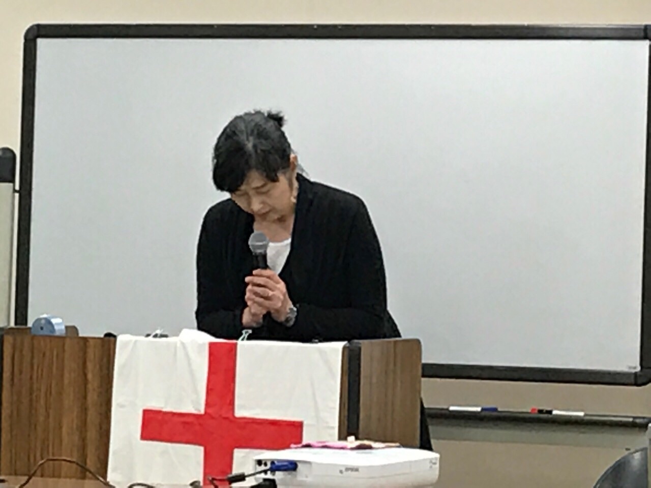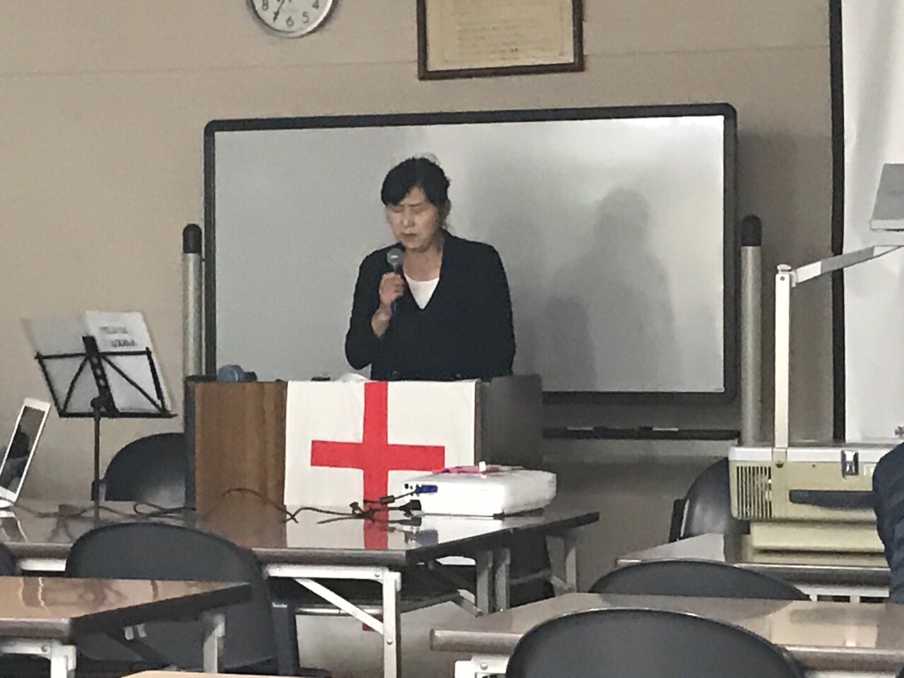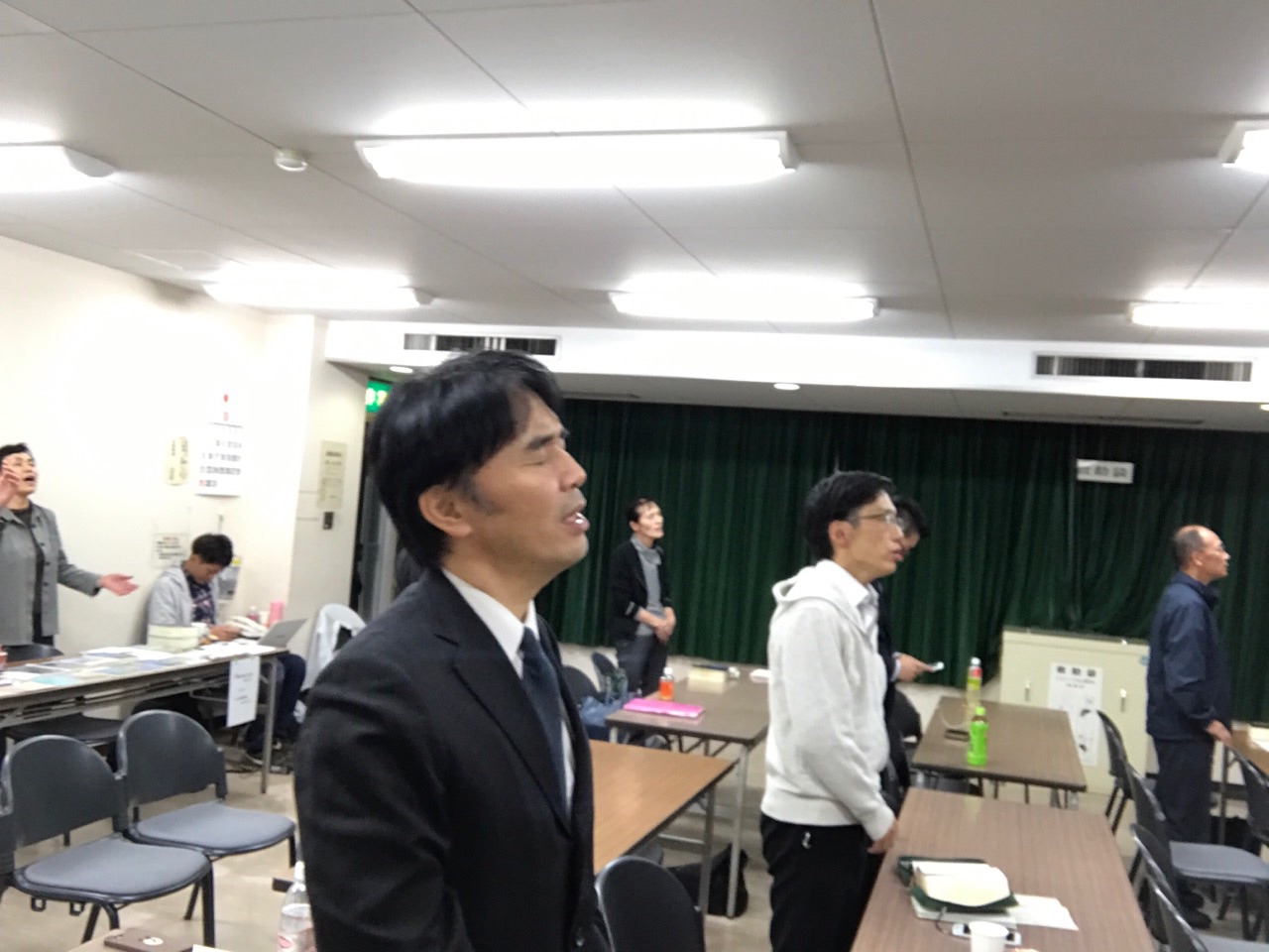 福島教会の牧師のヨセフ菱沼さん。 お祈りして聖会が始まりました。