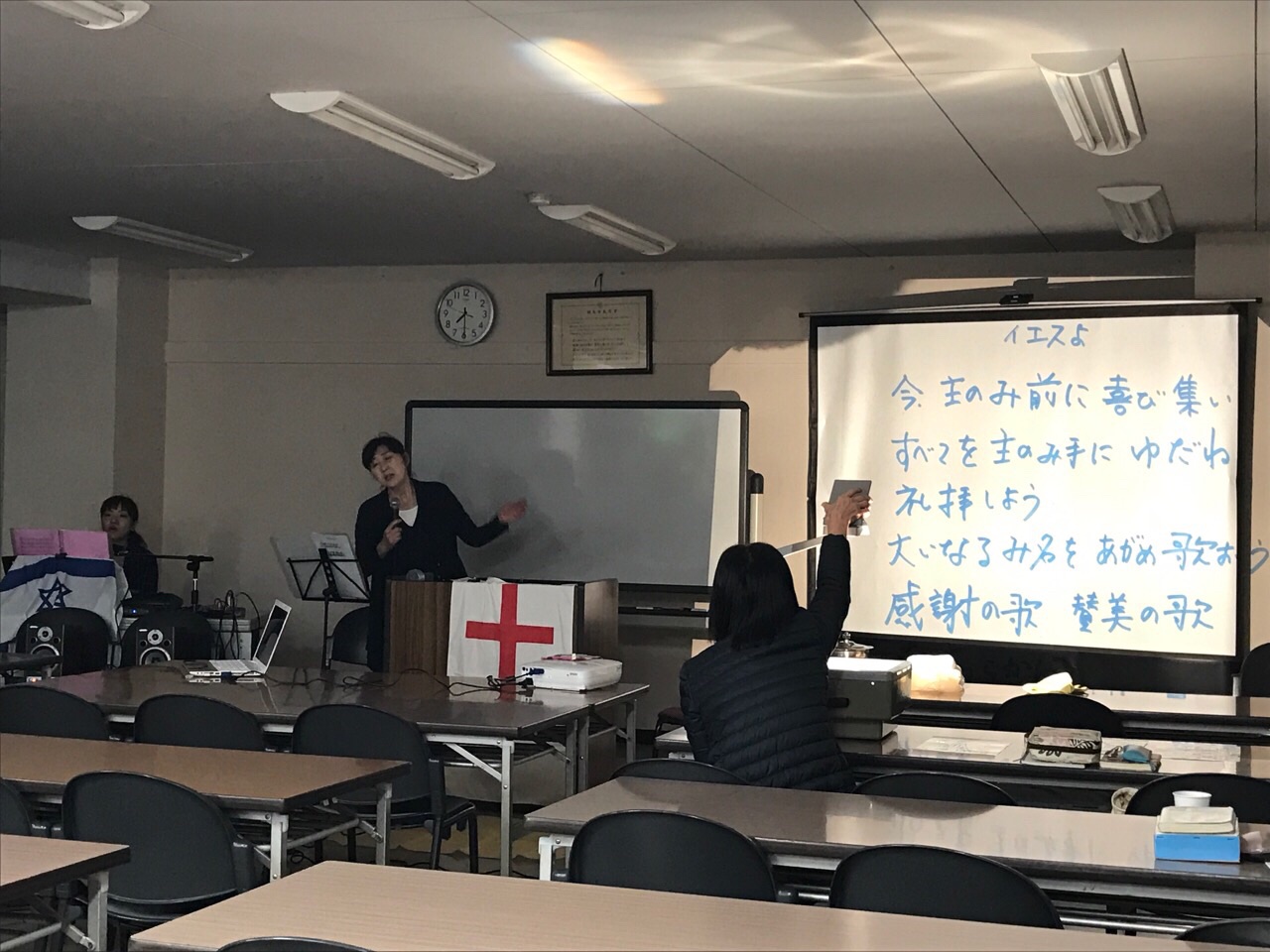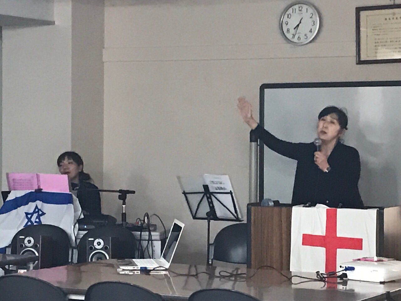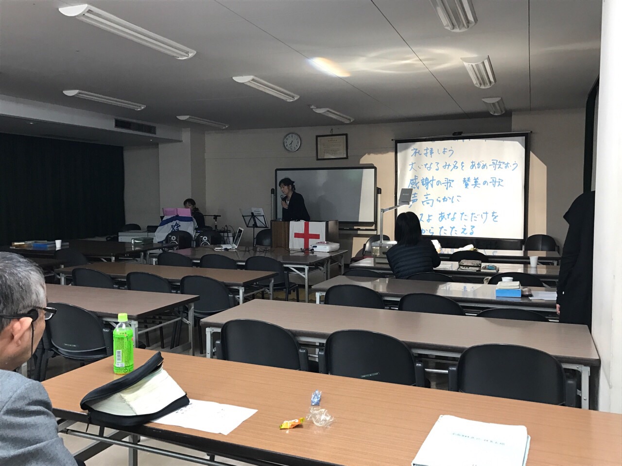 素早く、Giftsさん達のお片づけ。この後聖会が始まります。
