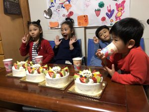 実家で11月生まれの姪コハルちゃんとミリアの誕生会しました♪
