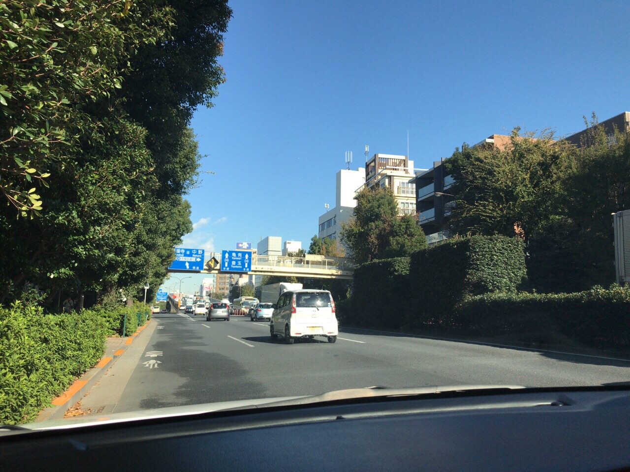 教会前の環七! 抜けるような青空ですね〜! いろいろ事務所に運んでいて、車の中で待っています。 amagai