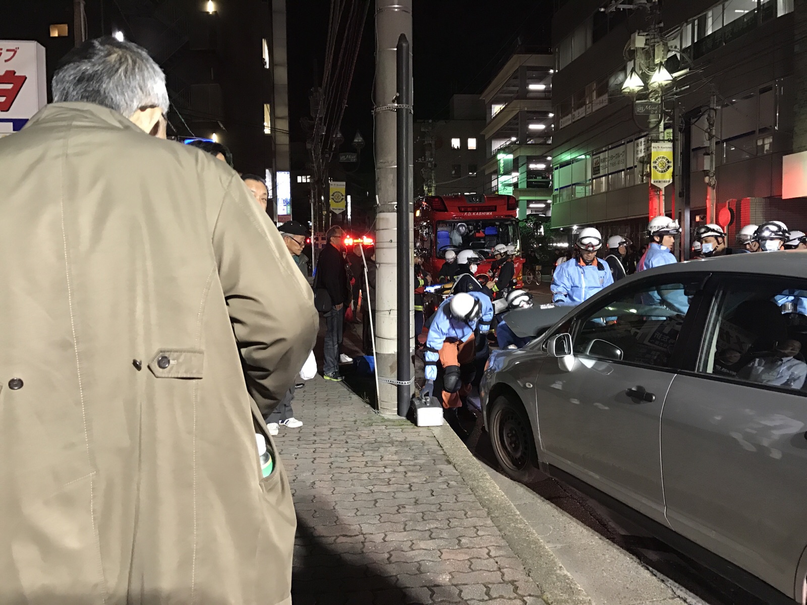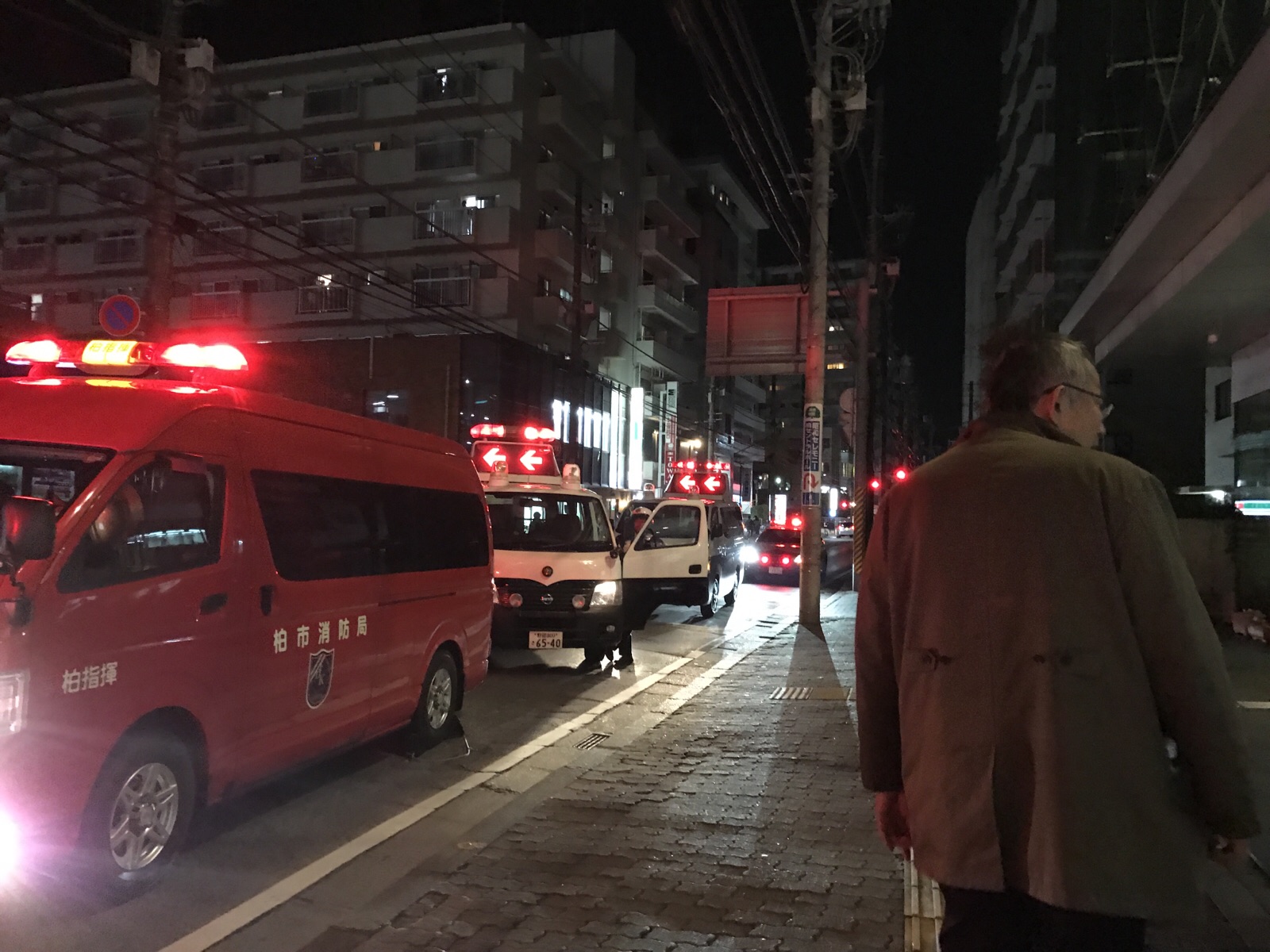 アミュゼ柏前は、パトカーや消防車、救急車が来ていました。