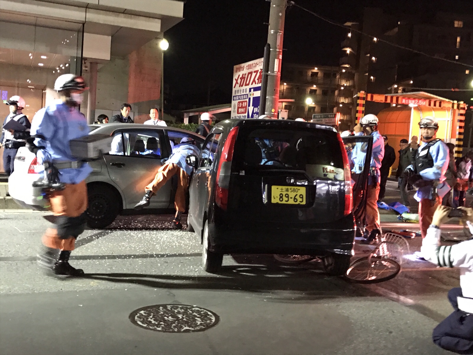 車と車の衝突!自転車も!子供さんがひかれたそうです。