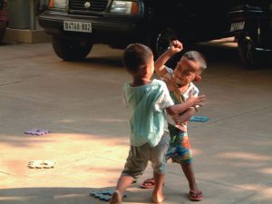子どもたちが小さいころの喧嘩している場面。喧嘩をあえて、止めませんでした。「喧嘩できるほど体力がついてきたのだ。」とうれし涙を流して見守っていたとか。―書籍「礎の石」より―(yoshino)