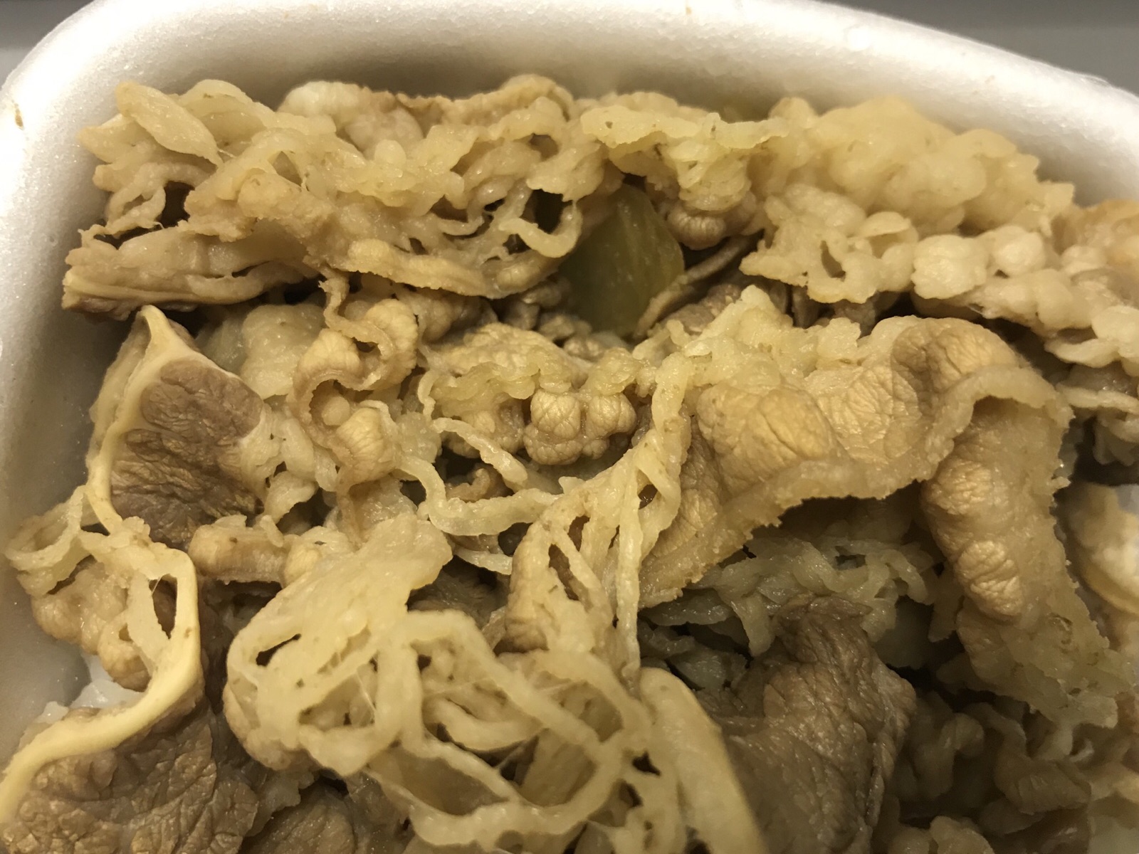 今日は吉野家の牛丼が夕食に いただきまーす!