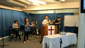 後半の賛美です。ぺテロ真境名さんが賛美を導かれます。