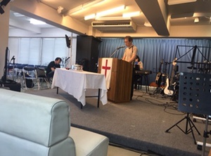 土曜礼拝が始まりました。賛美リーダーは益川さん。