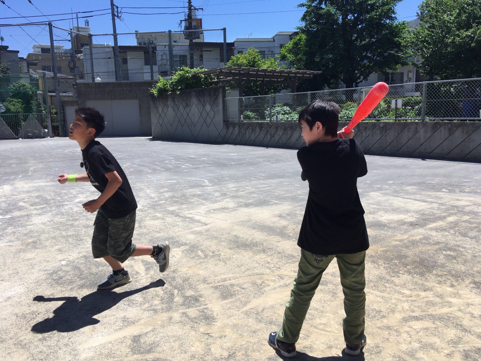 今日は、校庭で 野球しました(^^)