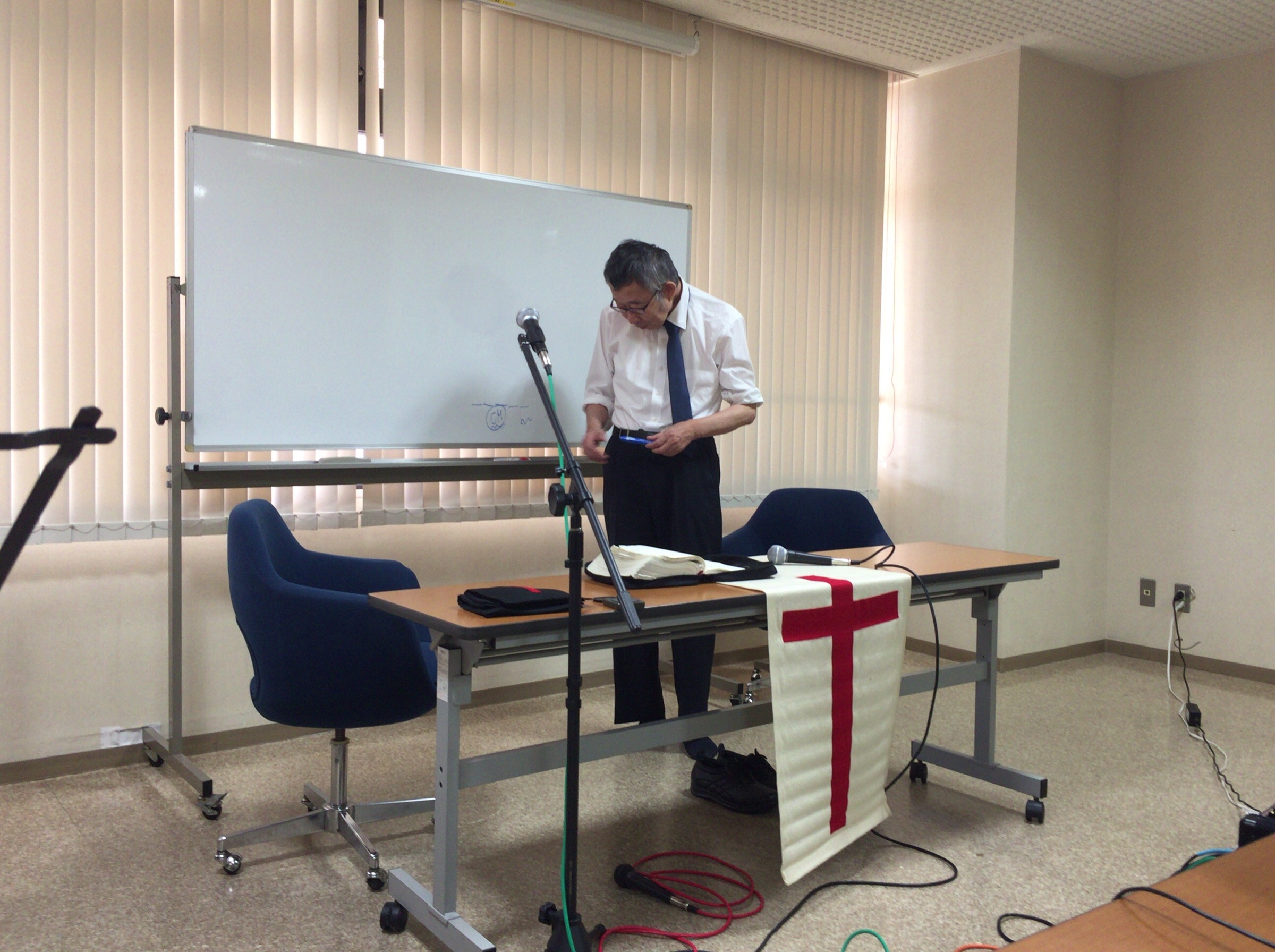 召天式の時のお話しをしておられます。神さまが遣わしてくださることを信じ受け取り、召天式でご親族が多く救われたことをお話しされています。 富士フィラデルフィヤ教会 ゆか