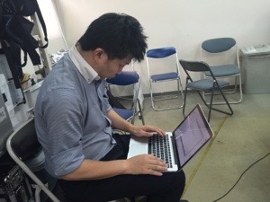 お仕事中のGiftsのサムエルさん。 1分動画にも出演しています。