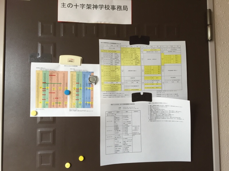 神学校のドアには 試験に関するお知らせが貼り出されて います。ご確認下さいね。 たかはし