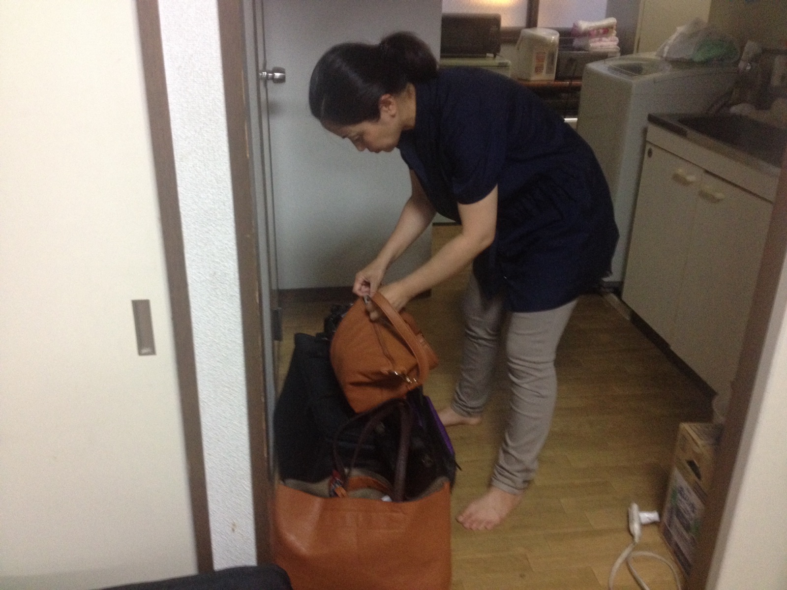 お届けします! 小代さん荷物を確認しています。 忘れ物ない?