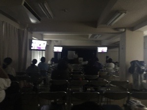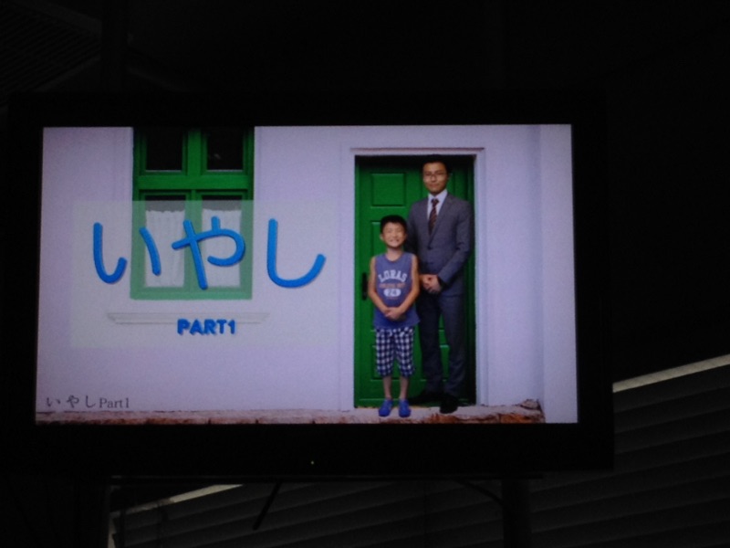 賛美の後、郡山のファミリーホームの映像を見ています。
