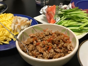 手巻き寿司です。しっかり食べて聖会に備えよう(^^)