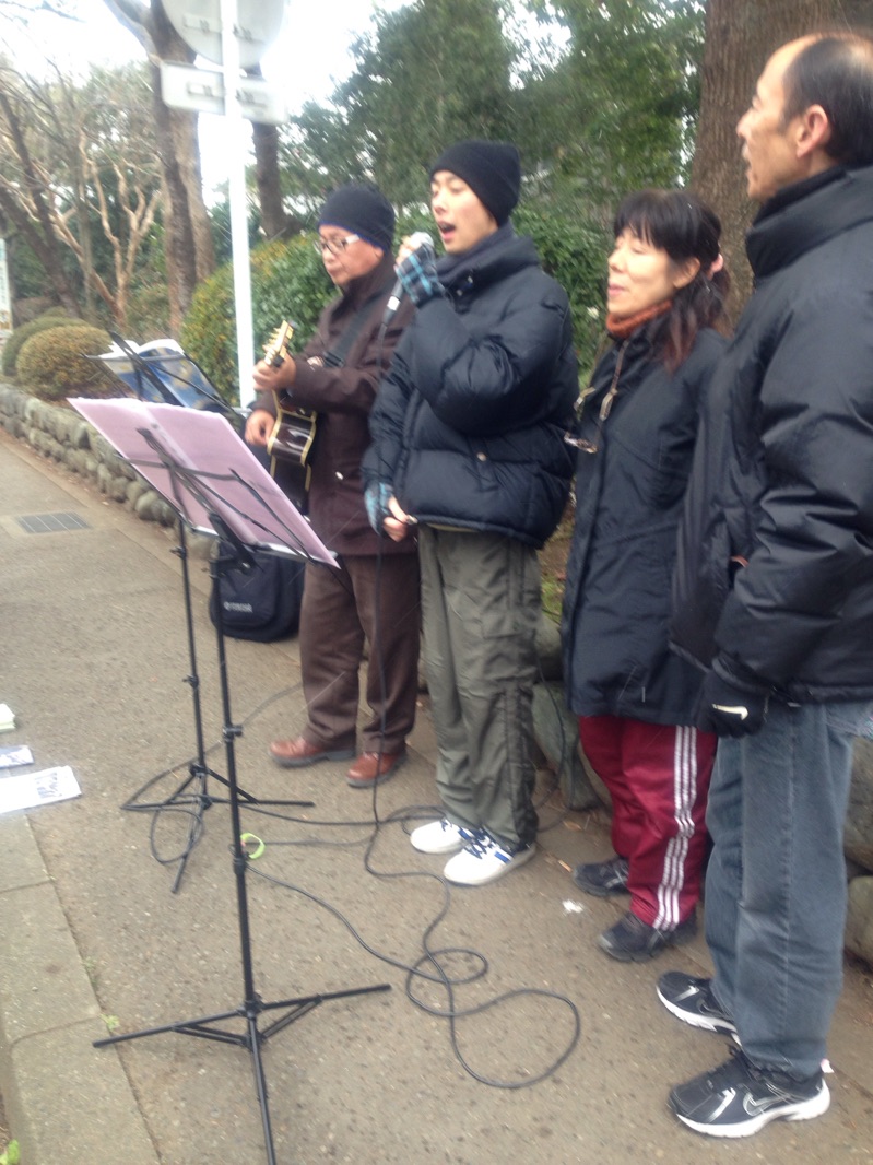 JR森ノ宮駅は、大阪城公園の入り口にあります。 電車発車の音楽が、森のクマさんです。