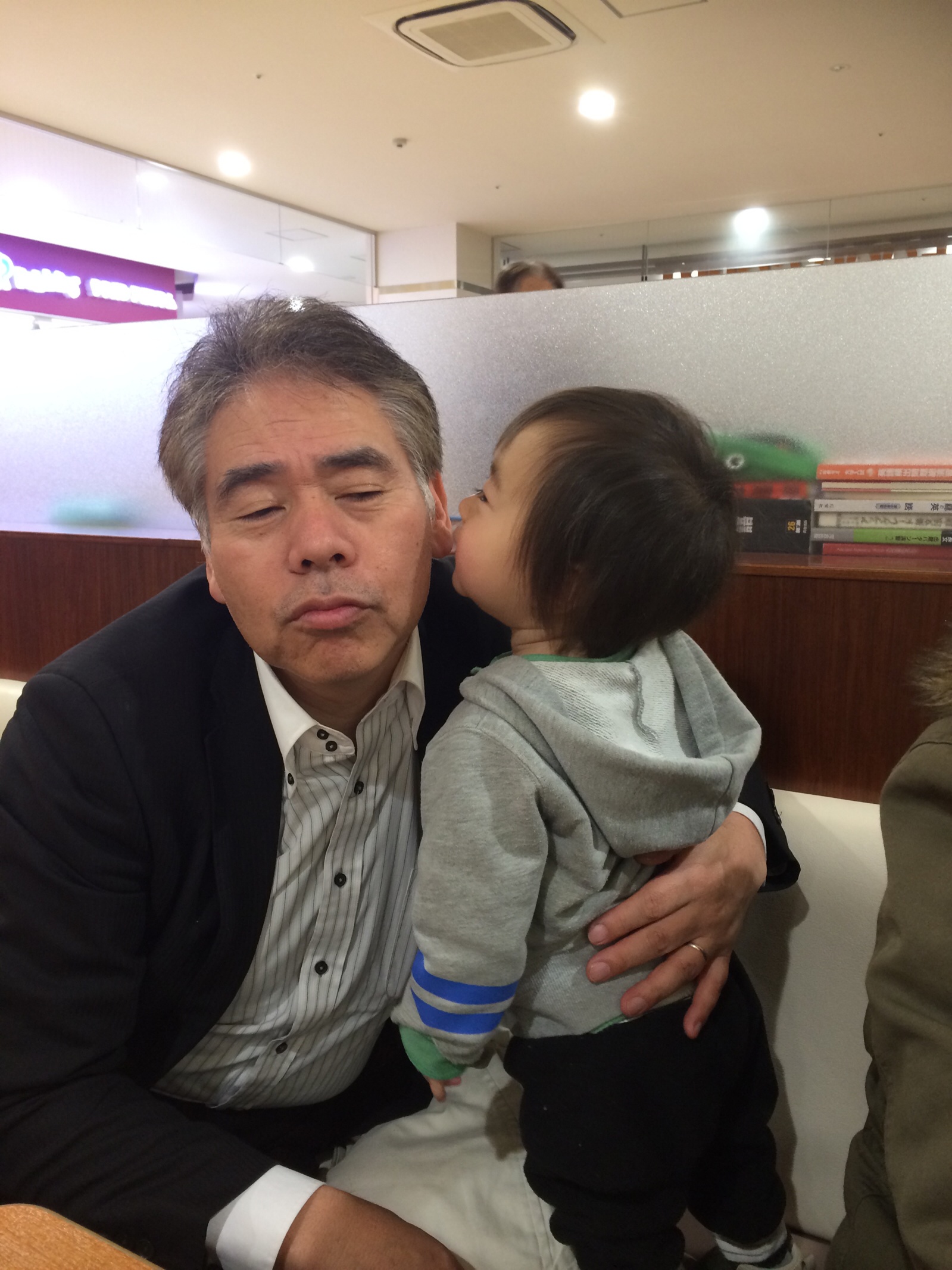 孫にチュッとされてニヤニヤするじぃじ。 疲れも吹っ飛びますね( ̄3 ̄) 神戸shion