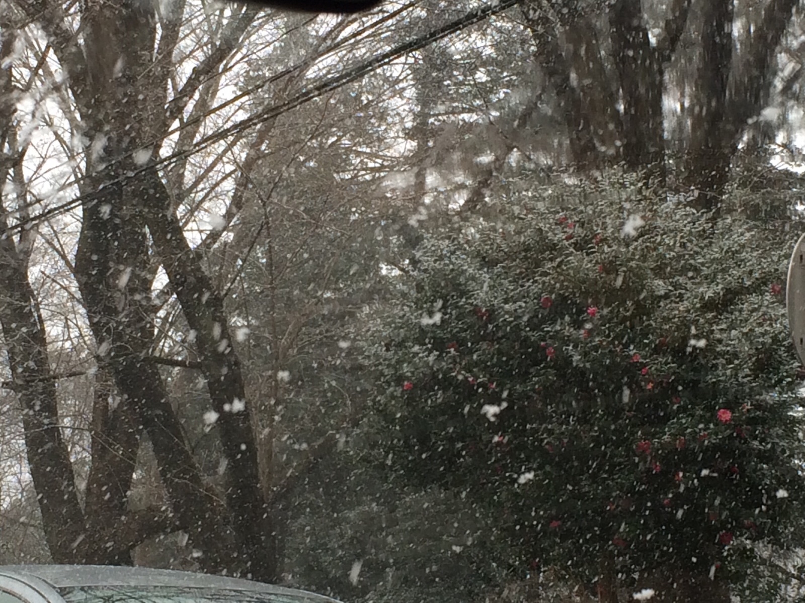 けっこう降ってきました。木々はうっすら積もってます。 大和教会