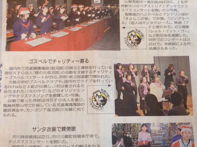 先日の図書館でのコンサート記事ですが、この写真を、「山日AR」という新聞社のアプリでかざすと、コンサート映像が見られるようになっています! なかなか、すごいです。 甲府 タニグチ