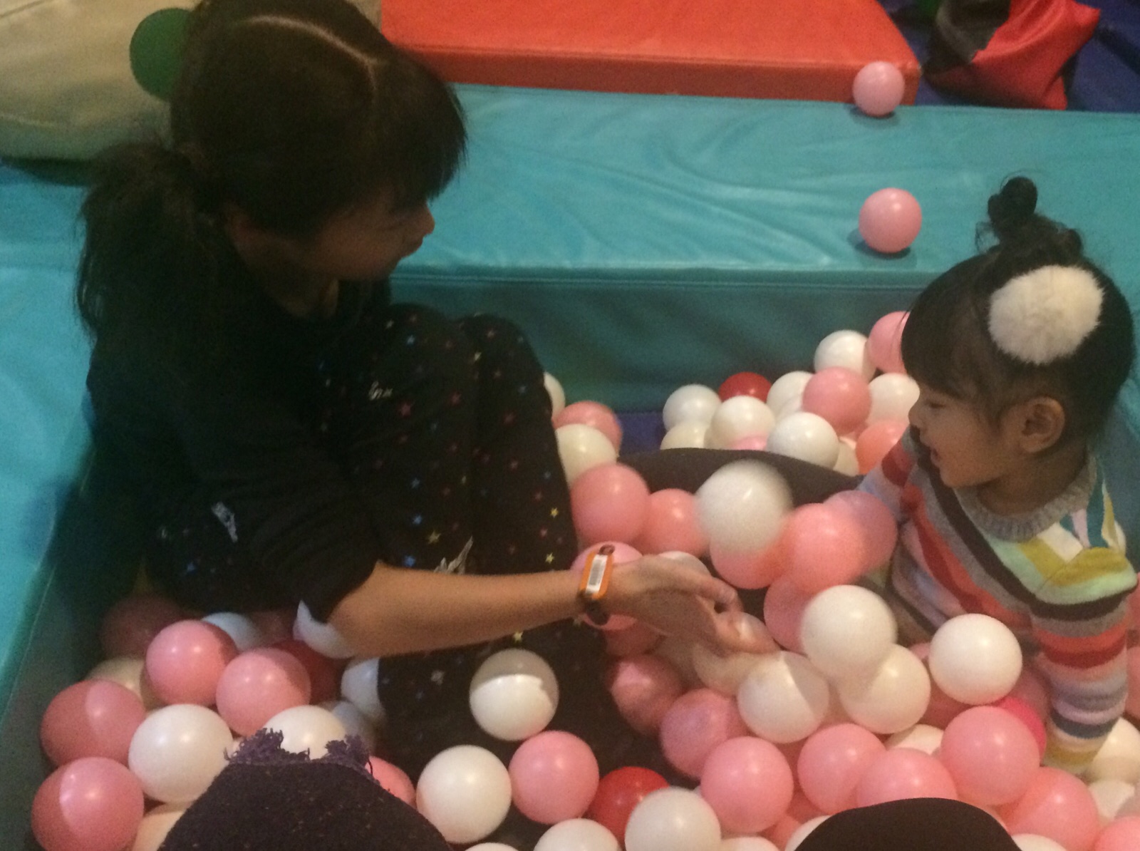 かなちゃんとミーちゃんは、ボールのお風呂?泡風呂だそうです。笑 四日市シオン教会