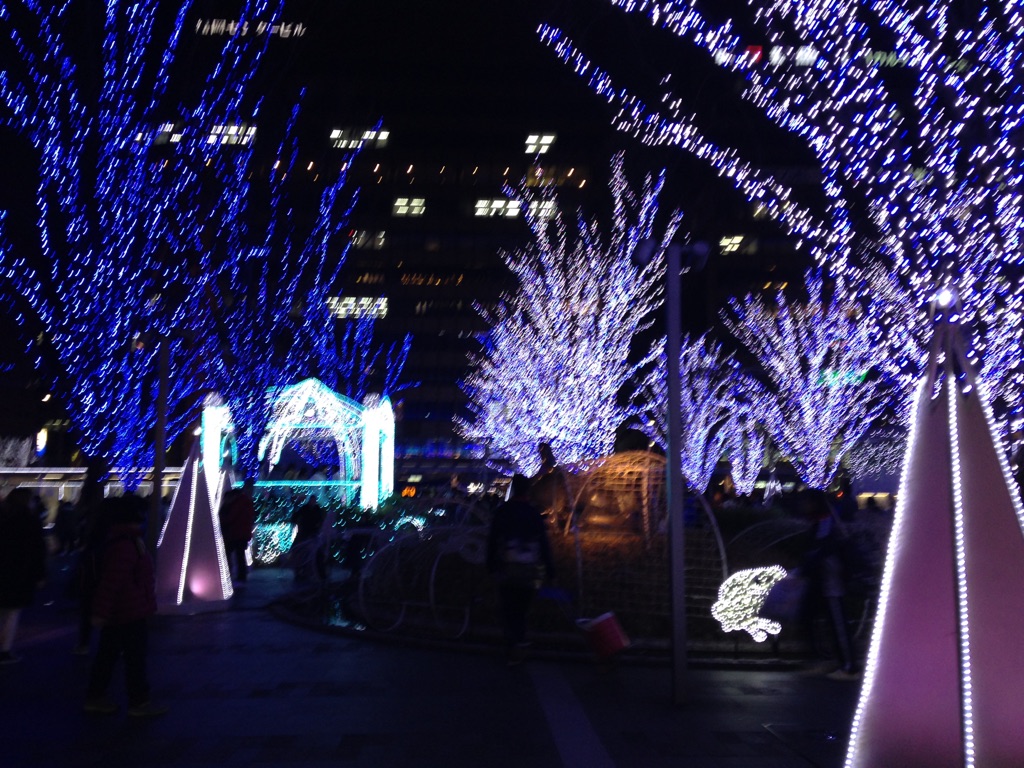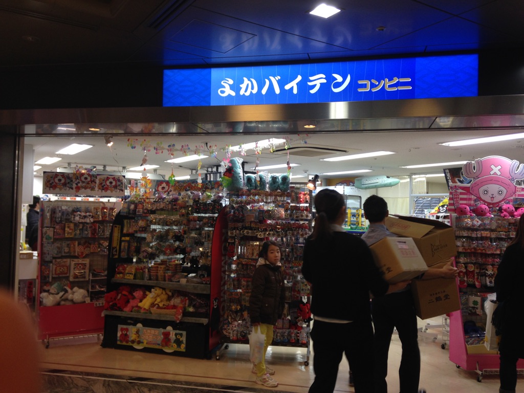 博多駅に着きました。よかバイテンという売店があります。 イルミネーションは今日の博多駅です。福岡教会 K