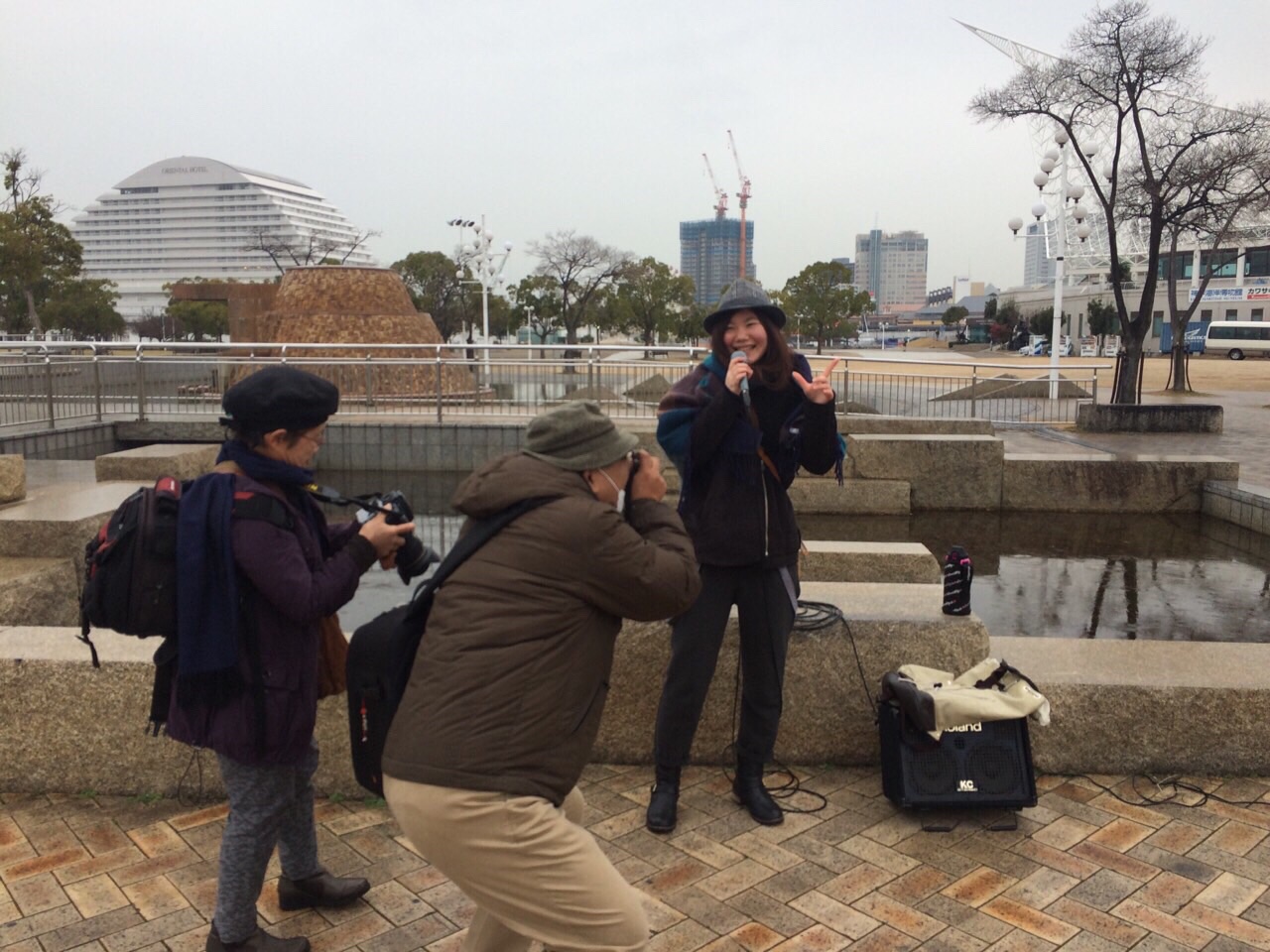 路上ライブの最後にカメラマンの方々が近づいて来て写真撮ってくれました。 神戸アンテオケjohn