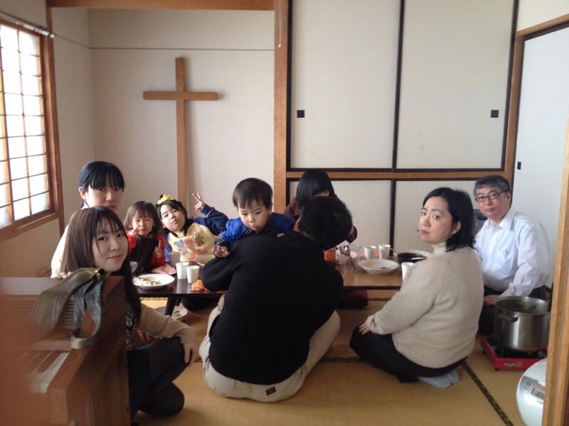北エルサレム教会の礼拝後、愛餐会の風景です。 今日は、稚内から岩谷ご夫妻が来られました。