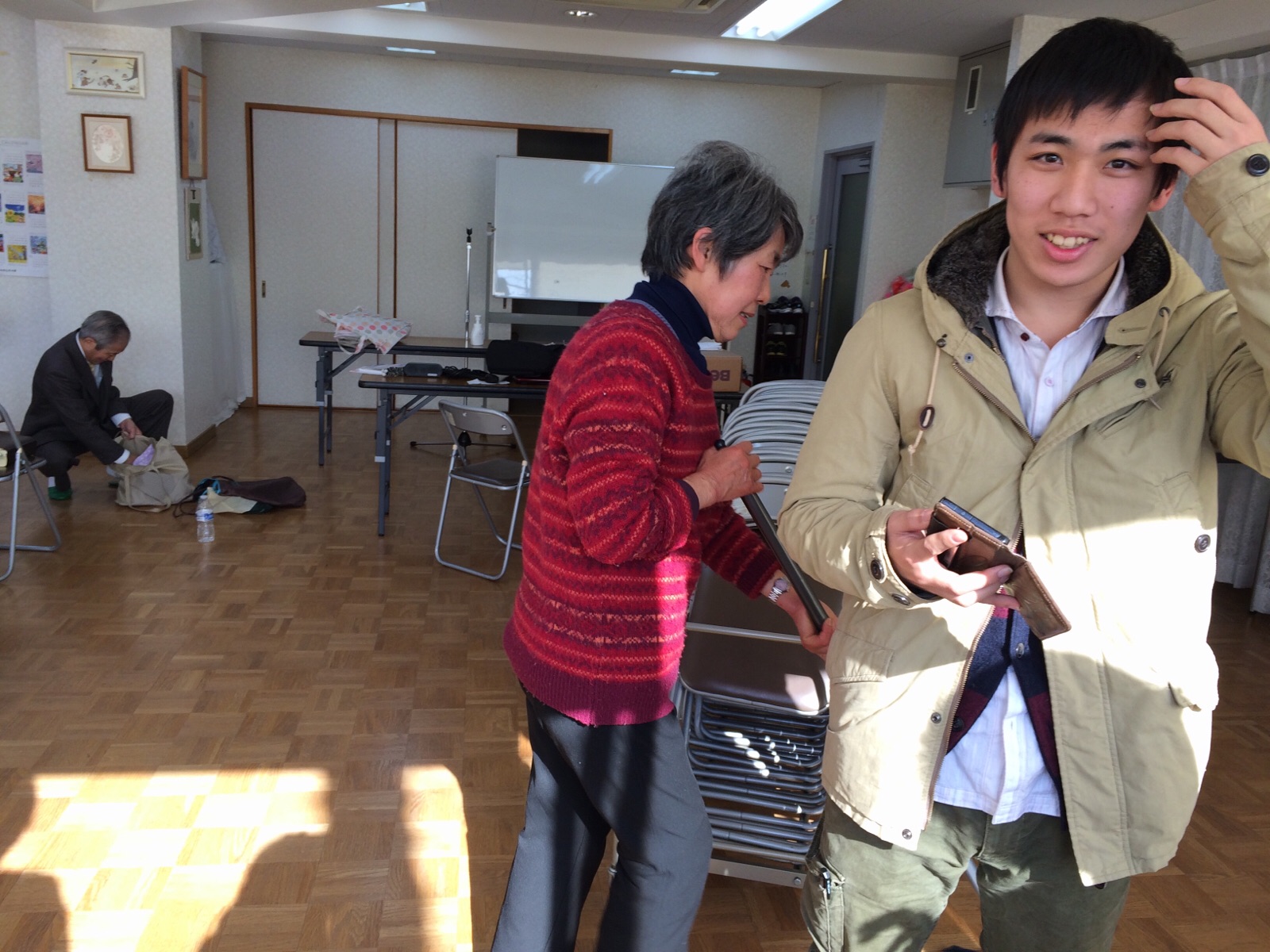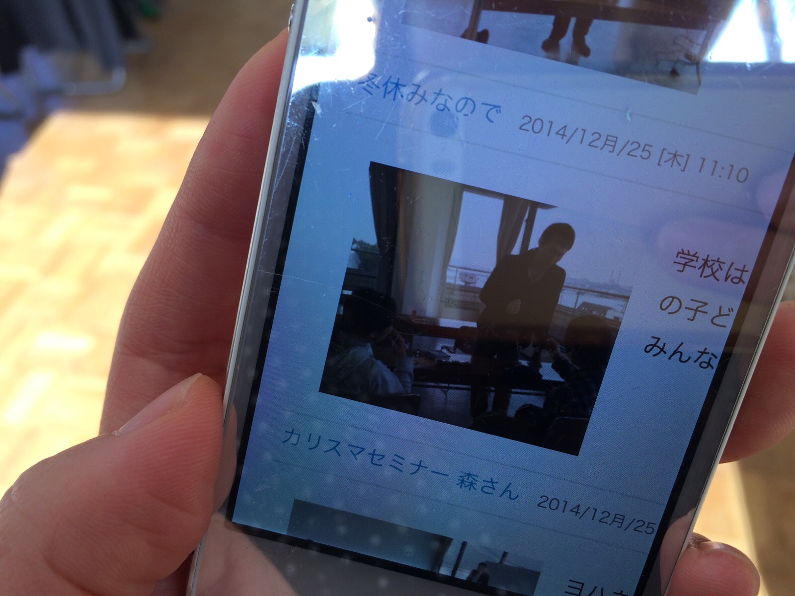 皆で、先週の和歌山聖会の時のブログを見ています。Kくんのご家族がうつっています。 大和教会