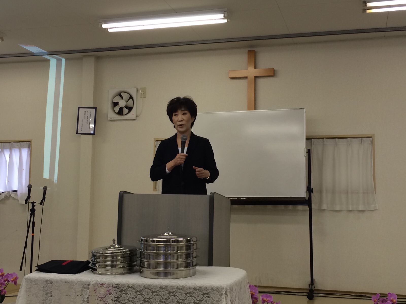 太田さんのメッセージをみんな真剣に聞いています。 四日市シオン教会