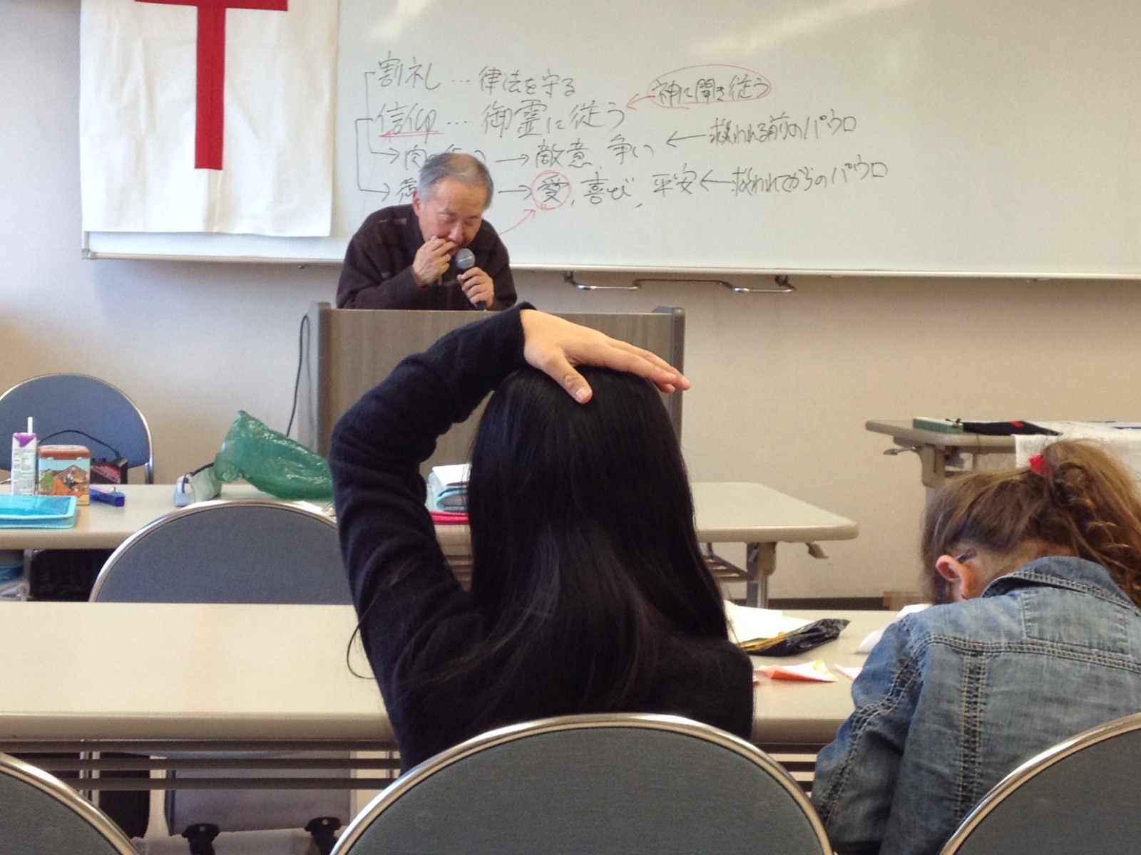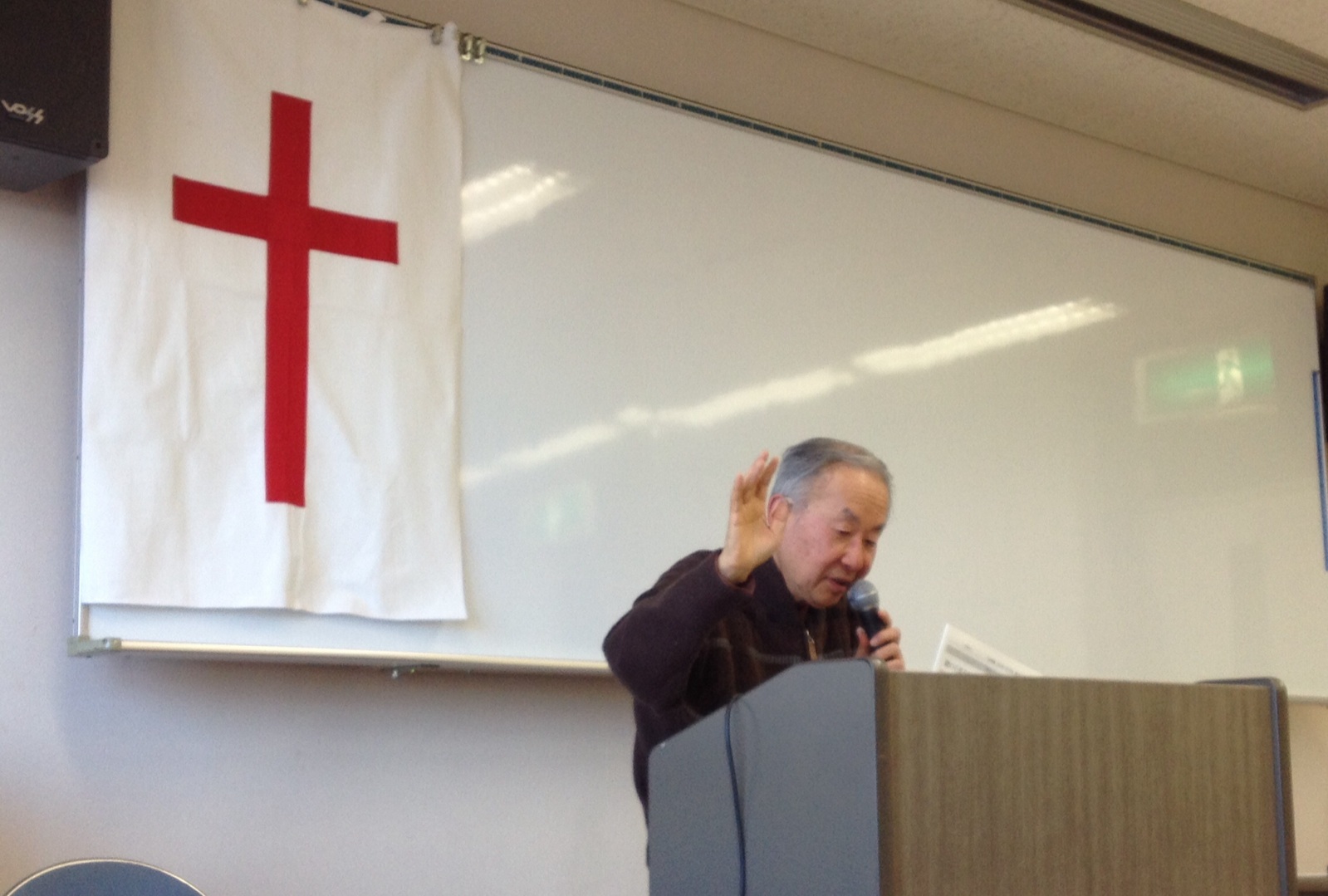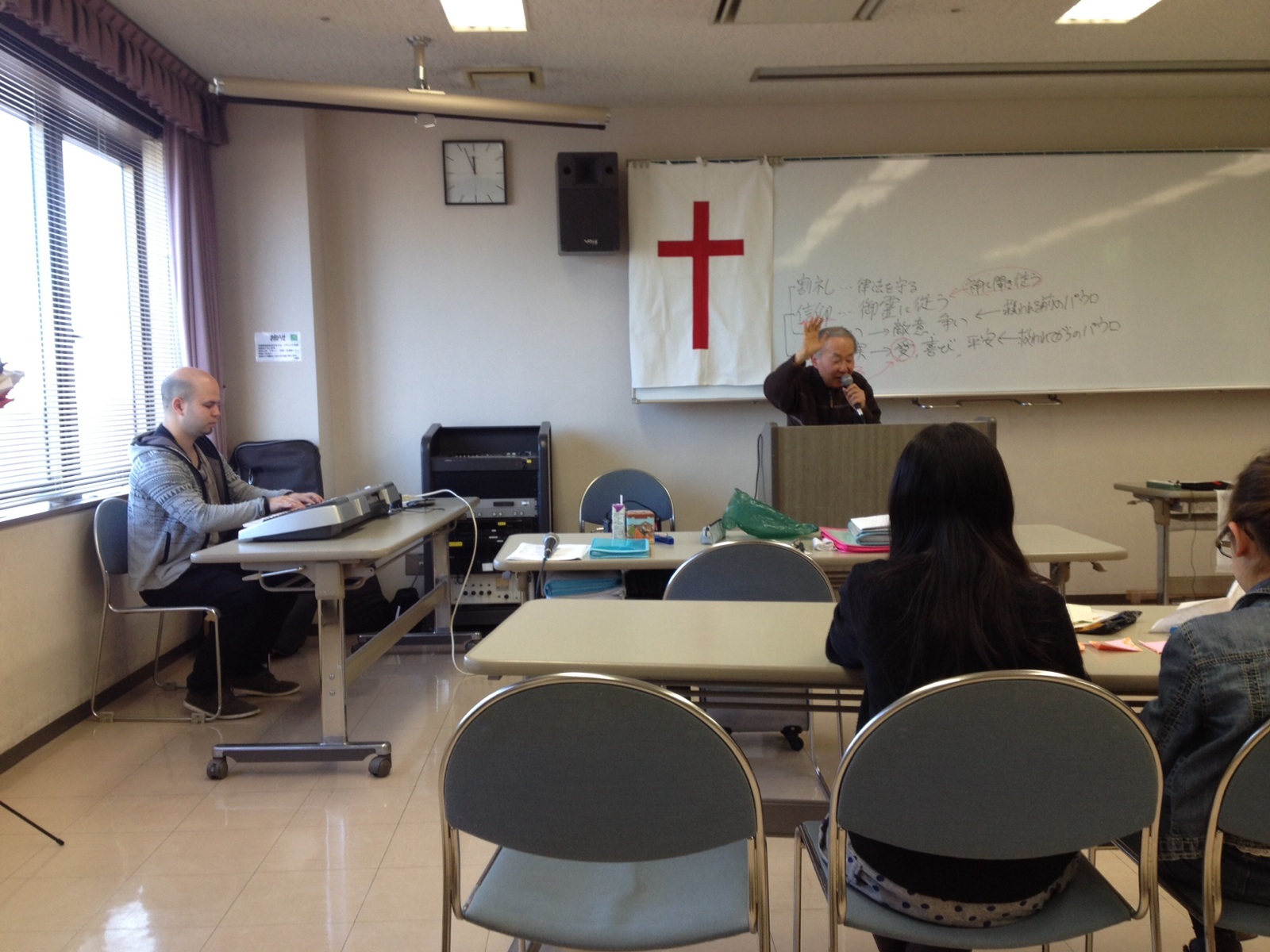 東フィラデルフィヤ教会牧師の蔵元さんのメッセージ中です。仙台 東フィラデルフィヤ教会