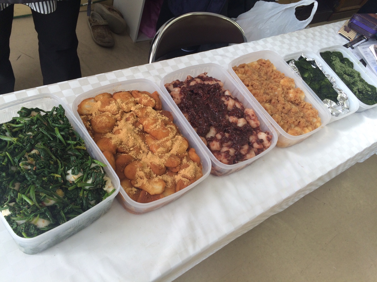 教会の方からお餅をいただきました。 ほうれん草、きな粉、あんこ、大根、のり… いろんな味があります! 四日市シオン教会