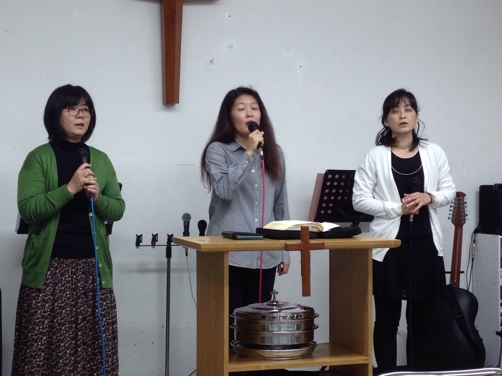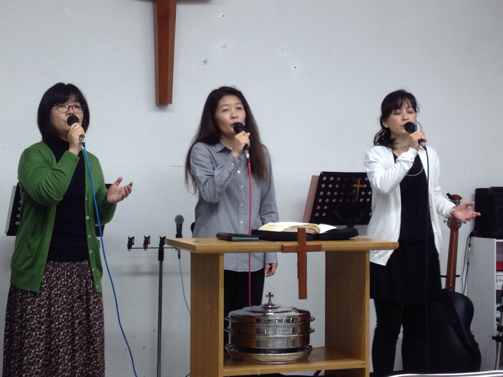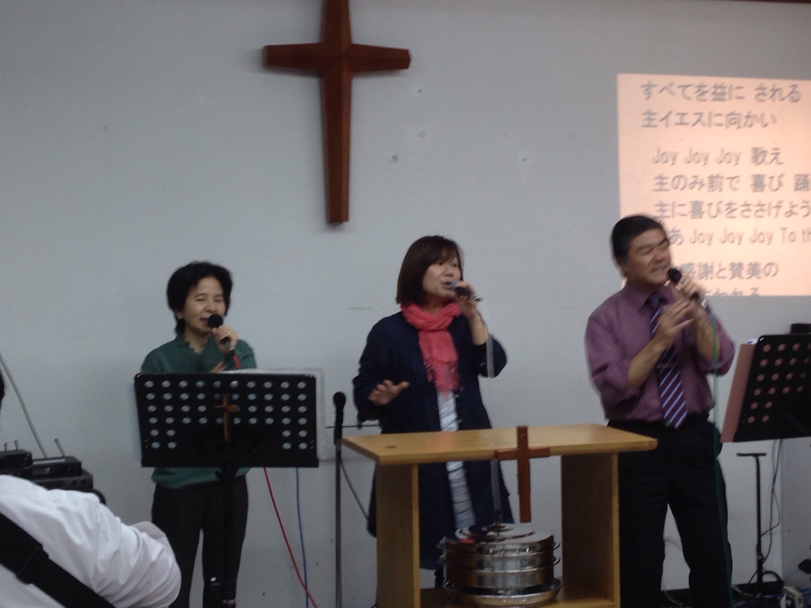 礼拝始まったよ。o(^▽^)o 会衆賛美してまーすよ。\(^o^)/