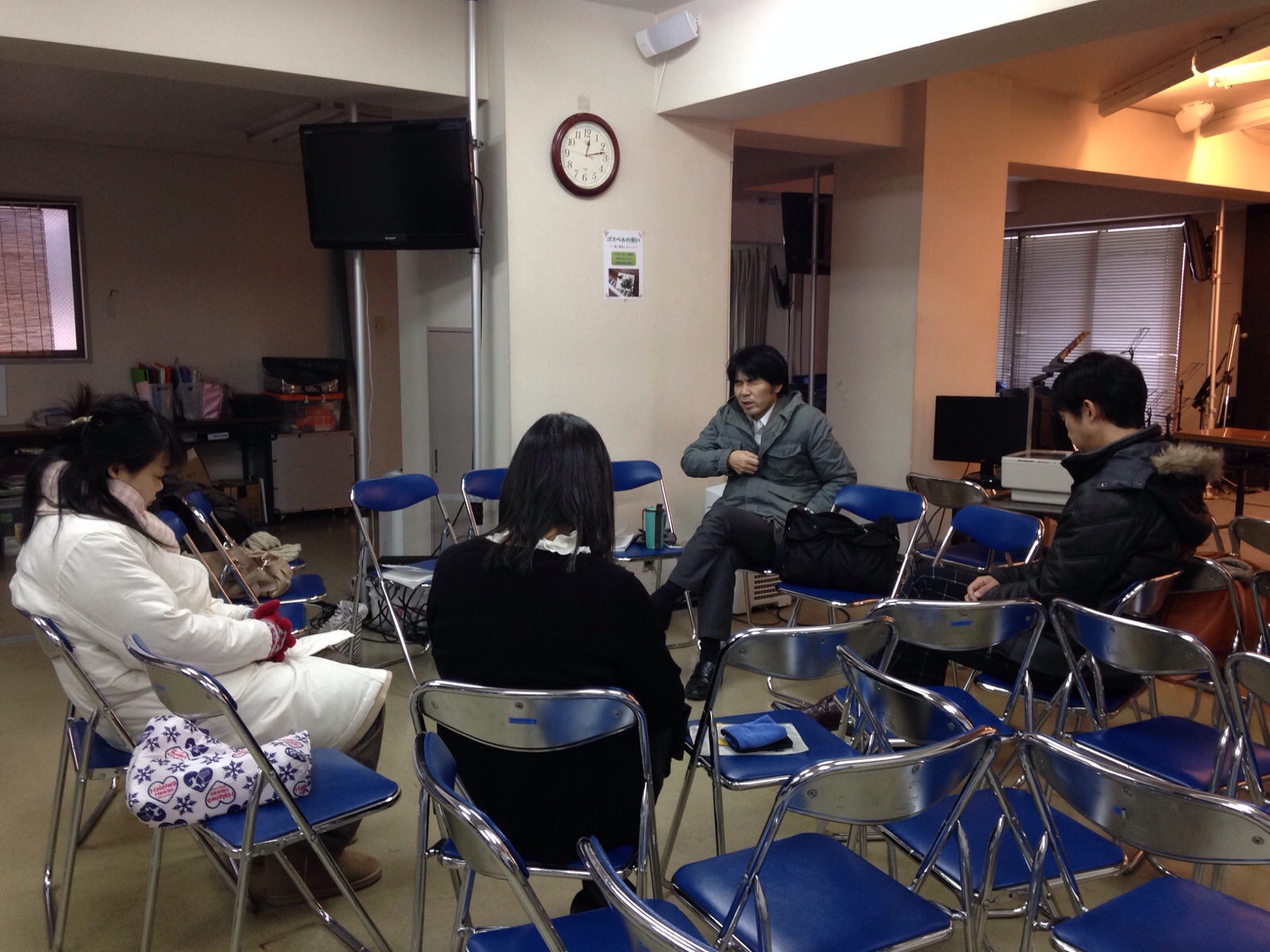 金曜礼拝前のひと時 みんなストーブの前に集まっています! 四日市シオン教会