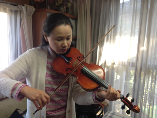 香代さんのバイオリンと私のピアノ?でバッハのメヌエットを合奏しました。思わぬ楽しい時間を感謝します。