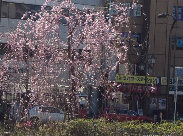 今日は休みの日ですが、ただいま待ち合わせで高円寺駅にいます。 南口の枝垂れ桜でしょうか、満開です。